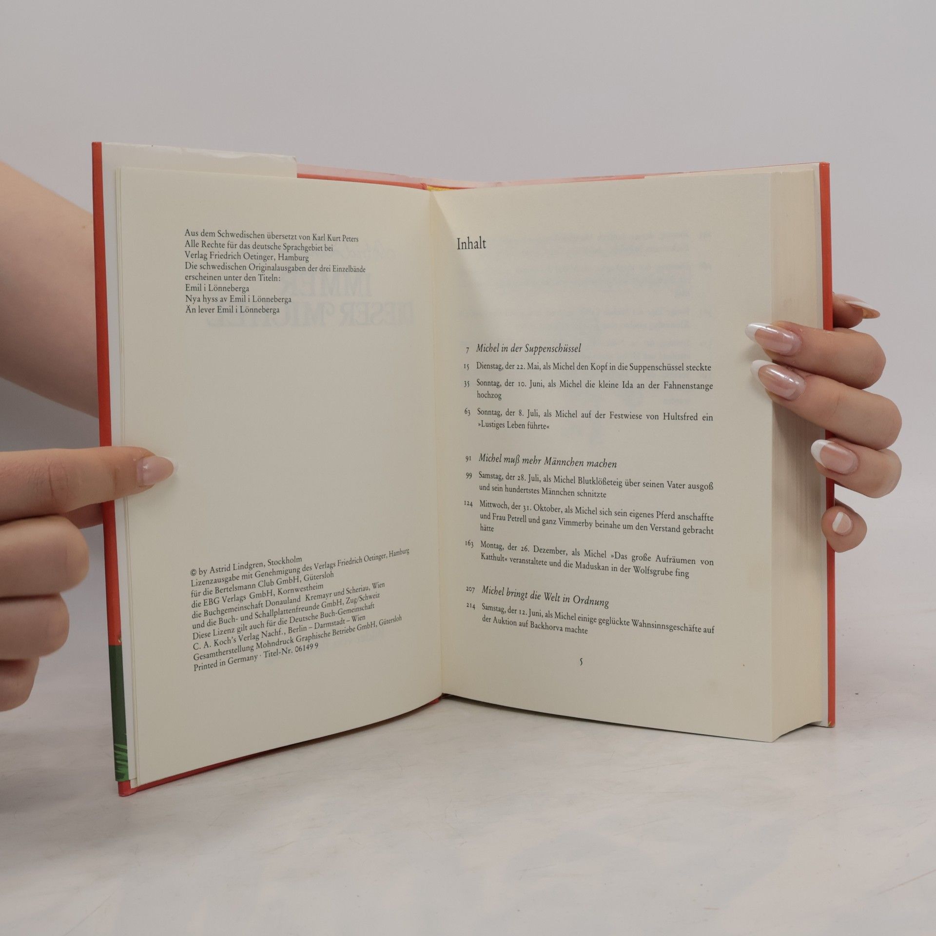Michel, fünf Jahre alt und stark wie ein kleiner Ochse, lebt auf dem Hof Katthult in Lönneberga, das ist ein Dorf in Småland in Südschweden. Mit seinen runden blauen Augen und dem hellen wolligen Haar könnte man ihn fast für einen Engel halten - wenn er schläft. Aber wenn er nicht schläft, dann hat er mehr Unsinn im Kopf als irgendein anderer Junge in ganz Lönneberga oder ganz Småland oder ganz Schweden oder vielleicht sogar auf der ganzen Welt! Die Gesamtausgabe enthält die Einzelbände „Michel in der Suppenschüssel“, „Michel muss mehr Männchen machen“ und „Michel bringt die Welt in Ordnung“.