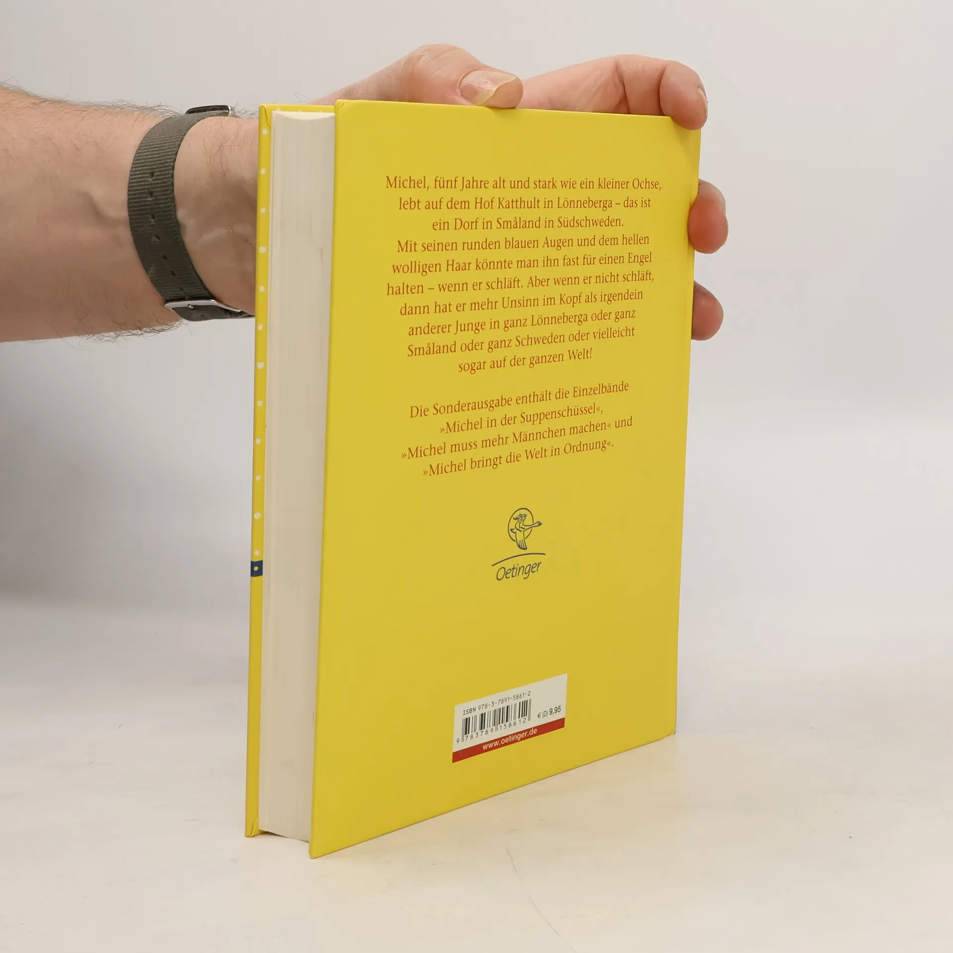 Michel, fünf Jahre alt und stark wie ein kleiner Ochse, lebt auf dem Hof Katthult in Lönneberga, das ist ein Dorf in Småland in Südschweden. Mit seinen runden blauen Augen und dem hellen wolligen Haar könnte man ihn fast für einen Engel halten - wenn er schläft. Aber wenn er nicht schläft, dann hat er mehr Unsinn im Kopf als irgendein anderer Junge in ganz Lönneberga oder ganz Småland oder ganz Schweden oder vielleicht sogar auf der ganzen Welt! Die Gesamtausgabe enthält die Einzelbände „Michel in der Suppenschüssel“, „Michel muss mehr Männchen machen“ und „Michel bringt die Welt in Ordnung“.