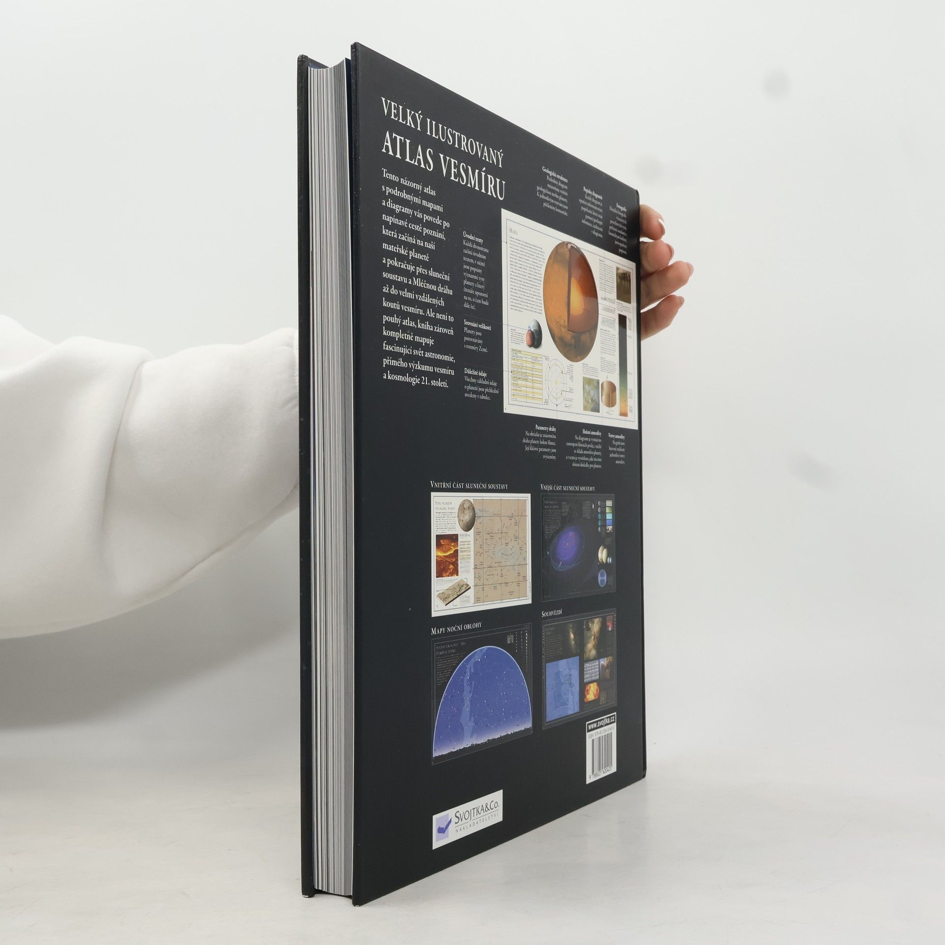 Velký ilustrovaný atlas vesmíru je komplexní průvodce osvětlující dosavadní poznatky o vesmíru a jeho zákonitostech včetně našeho místa v něm. Najdete zde stovky speciálně vytvořených map, grafických znázornění a ilustrací, které spolu s nejnovějšími barevnými fotografiemi objektů hlubokého vesmíru, které byly pořízeny kosmickými sondami či Hubblovým teleskopem, dokumentují vesmír lépe, než doposud vydané knihy s touto tematikou.