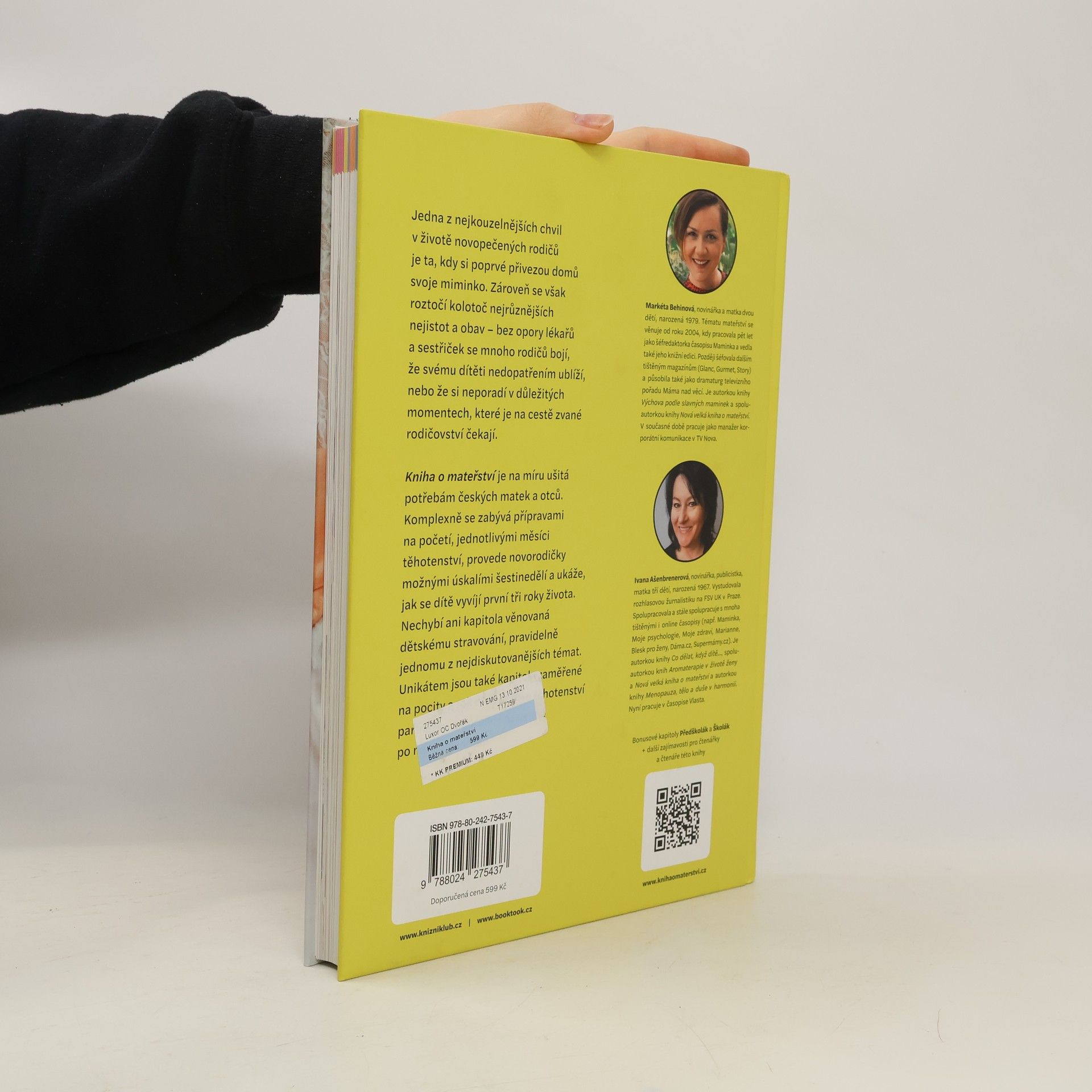 Komplexní průvodce mateřstvím mapuje základní mezníky od příprav na početí, přes těhotenství, porod, šestinedělí, první rok dítěte až do věku tří let. Kniha je napsaná autorkami, které se dlouhodobě zabývají tématem mateřství a samy jsou matkami celkem pěti dětí. Na přípravě knihy se podíleli přední čeští odborníci a jsou v ní zohledněny aktuální otázky a témata, které rodiče často řeší – trendy ve výživě malých dětí, očkování, či léčba nejrůznějších nemocí. Nechybí stránky připravené speciálně pro tatínky, zkušenosti autorek a tipy od samotných rodičů. Kniha předává čtenářkám a čtenářům nejdůležitější informace v péči o děti a dodává jim pocit jistoty, že to dělají správně.