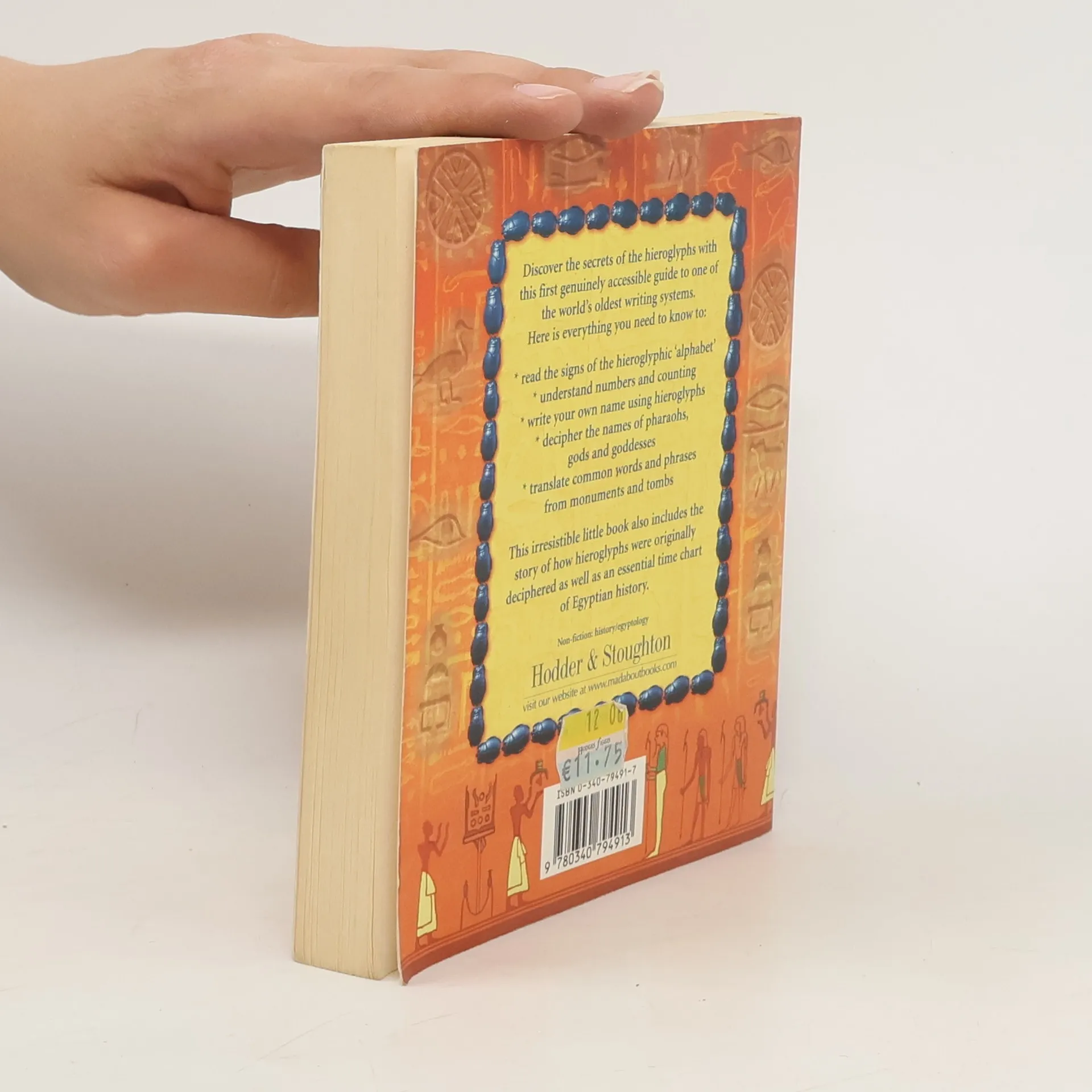 A simple introduction to Egyptian hieroglyphs designed for the complete beginner. This book aims to make the basics of hieroglyphs easy to understand. Explaining briefly the history and development of the language, it then gives the Egyptian alphabet and shows how simple it is to spell your own name using hieroglyphs.