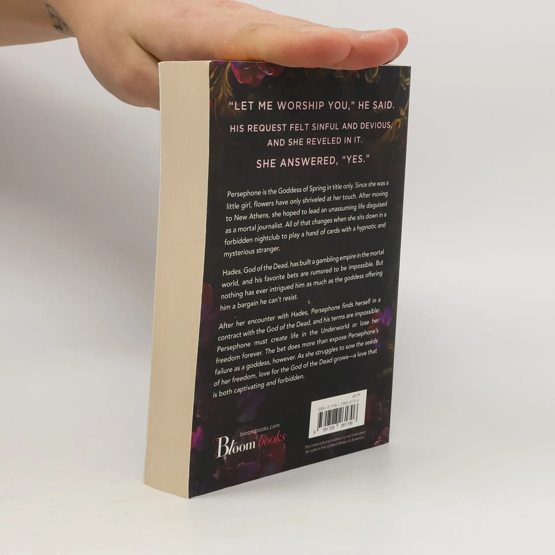 From bestselling author Scarlett St. Clair comes a dark and enthralling reimagining of the Hades and Persephone Greek myth. "Let me worship you," he said. She remembered the words she had whispered to him in the back of the limo after La Rose. "You will worship me, and I won't even have to order you." His request felt sinful and devious, and she reveled in it. She answered, "Yes." Persephone is the Goddess of Spring in title only. Since she was a little girl, flowers have only shriveled at her touch. After moving to New Athens, she hoped to lead an unassuming life disguised as a mortal journalist. All of that changes when she sits down in a forbidden nightclub to play a hand of cards with a hypnotic and mysterious stranger. Hades, God of the Dead, has built a gambling empire in the mortal world and his favorite bets are rumored to be impossible. But nothing has ever intrigued him as much as the goddess offering him a bargain he can't resist. After her encounter with Hades, Persephone finds herself in a contract with the God of the Dead, and his terms are impossible: Persephone must create life in the Underworld or lose her freedom forever. The bet does more than expose Persephone's failure as a goddess, however. As she struggles to sow the seeds of her freedom, love for the God of the Dead grows-a love that is both captivating and forbidden.