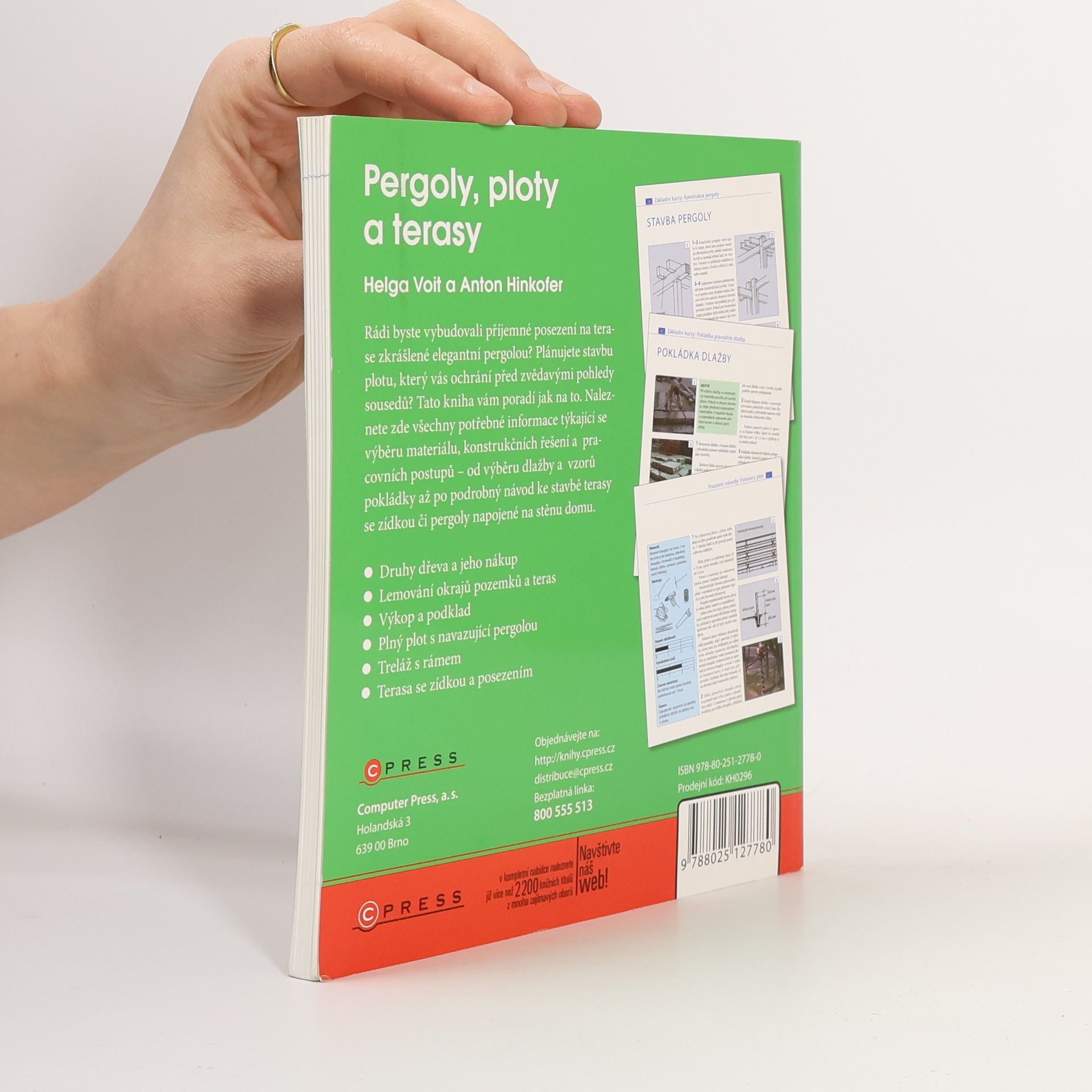 Rádi byste vybudovali příjemné posezení na terase zkrášlené elegantní pergolou? Plánujete stavbu plotu, který vás ochrání před zvědavými pohledy sousedů? Tato kniha vám poradí, jak na to. Naleznete zde všechny potřebné informace týkající se výběru materiálu, konstrukčních řešení a pracovních postupů – od výběru dlažby a vzorů pokládky až po podrobný návod ke stavbě terasy se zídkou či pergoly napojené na stěnu domu.