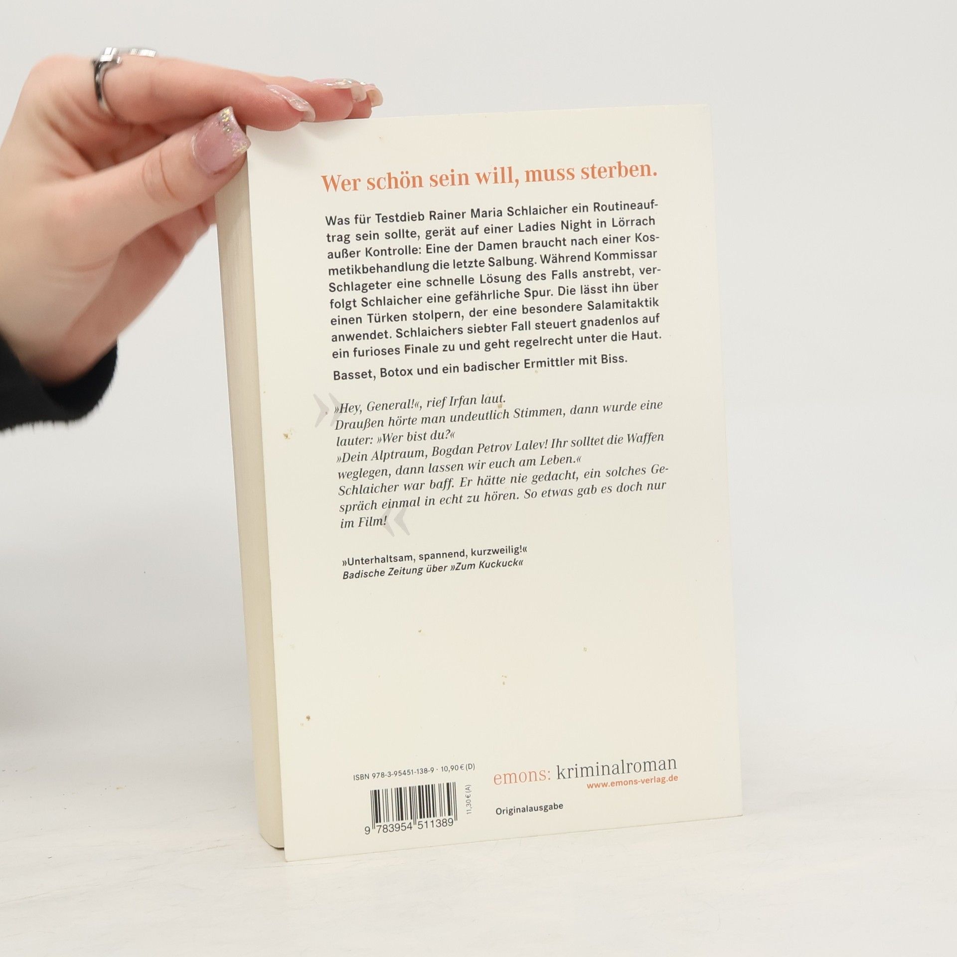 Was für Testdieb Rainer Maria Schlaicher ein Routineauftrag sein sollte, gerät auf einer Ladies Night im Lörracher Karstadt ausser Kontrolle: Eine der Damen braucht nach einer Kosmetikbehandlung die letzte Salbung. Während Kommissar Schlageter eine schnelle Lösung des Falls anstrebt, verfolgt Schlaicher eine gefährliche Spur. Die lässt ihn über einen Türken stolpern, der eine besondere Salamitaktik anwendet. Schlaichers siebter Fall steuert gnadenlos auf ein furioses Finale zu und geht regelrecht unter die Haut. Ralf H. Dorweiler, geboren 1973 in Nastätten im Taunus, wuchs in der Nähe der Loreley auf und studierte in Köln Theater-, Film- und Fernsehwissenschaft. Seit zehn Jahren lebt er mit seiner Familie und dem "echten" Basset Dr. Watson im Wiesental und arbeitet für eine badische Tageszeitung.