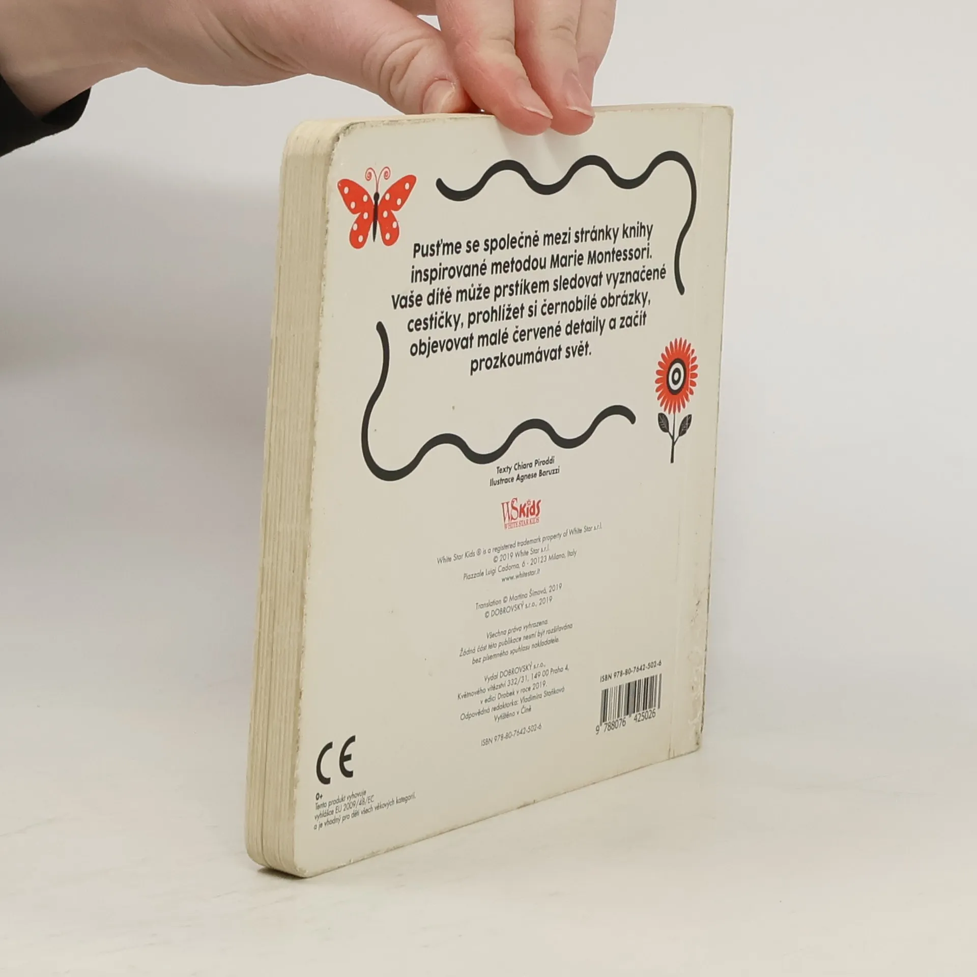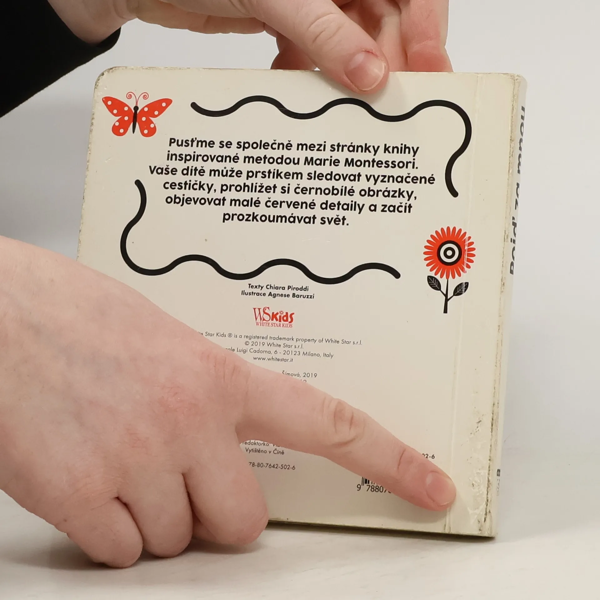 Pusťme se společně mezi stránky knihy inspirované metodou Marie Montessori. Vaše dítě může prstíkem sledovat vyznačené cestičky, prohlížet si černobílé obrázky, objevovat malé červené detaily a začít prozkoumávat svět. Vhodné pro děti ve věku 0 až 12 měsíců.