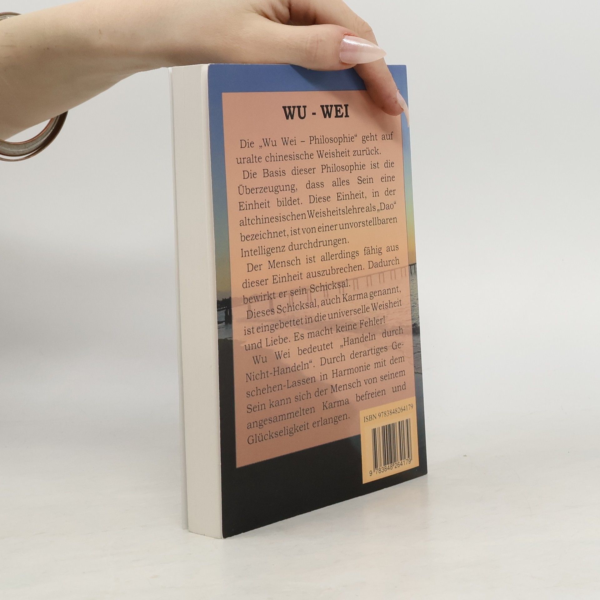 Die "Wu Wei - Philosophie" geht auf uralte chinesische Weisheit zurück. Die Basis dieser Philosophie ist die Überzeugung, dass alles Sein eine Einheit bildet. Diese Einheit, in der altchinesischen Weisheitslehre als "Dao" bezeichnet, ist von einer unvorstellbaren Intelligenz durchdrungen. Der Mensch ist allerdings fähig, aus dieser Einheit auszubrechen. Dadurch bewirkt er sein Schicksal. Dieses Schicksal, auch Karma genannt, ist, wie immer es sich gestaltet, eingebettet in die universelle Weisheit und Liebe. "Wu Wei" bedeutet "Handeln durch Nicht-Handeln". Durch derartiges Geschehen-Lassen in Harmonie mit dem Sein, kann sich der Mensch von seinem angesammelten Karma befreien und Glückseligkeit erlangen. Dieses Buch beinhaltet keine trockene oder abgehobene Theorie, sondern zeigt, wie "Wu Wei" im praktischen Leben umgesetzt werden kann. Der Autor setzt sich in dieser Schrift unter anderem mit folgenden Themen auseinander: "Loslassen, aber wie?"; "Freudige Gefühle selbst bestimmen!"; "Das Ego-Bewusstsein"; "Vom Umgang mit der Angst"; "Heilung von Depression und Burn-Out"; "Vom Sinn des Lebens"; "Was ist Liebe?"; "Hypersensiblität"; "Genügend Zeit haben"; "Anleitung zur Meditation".