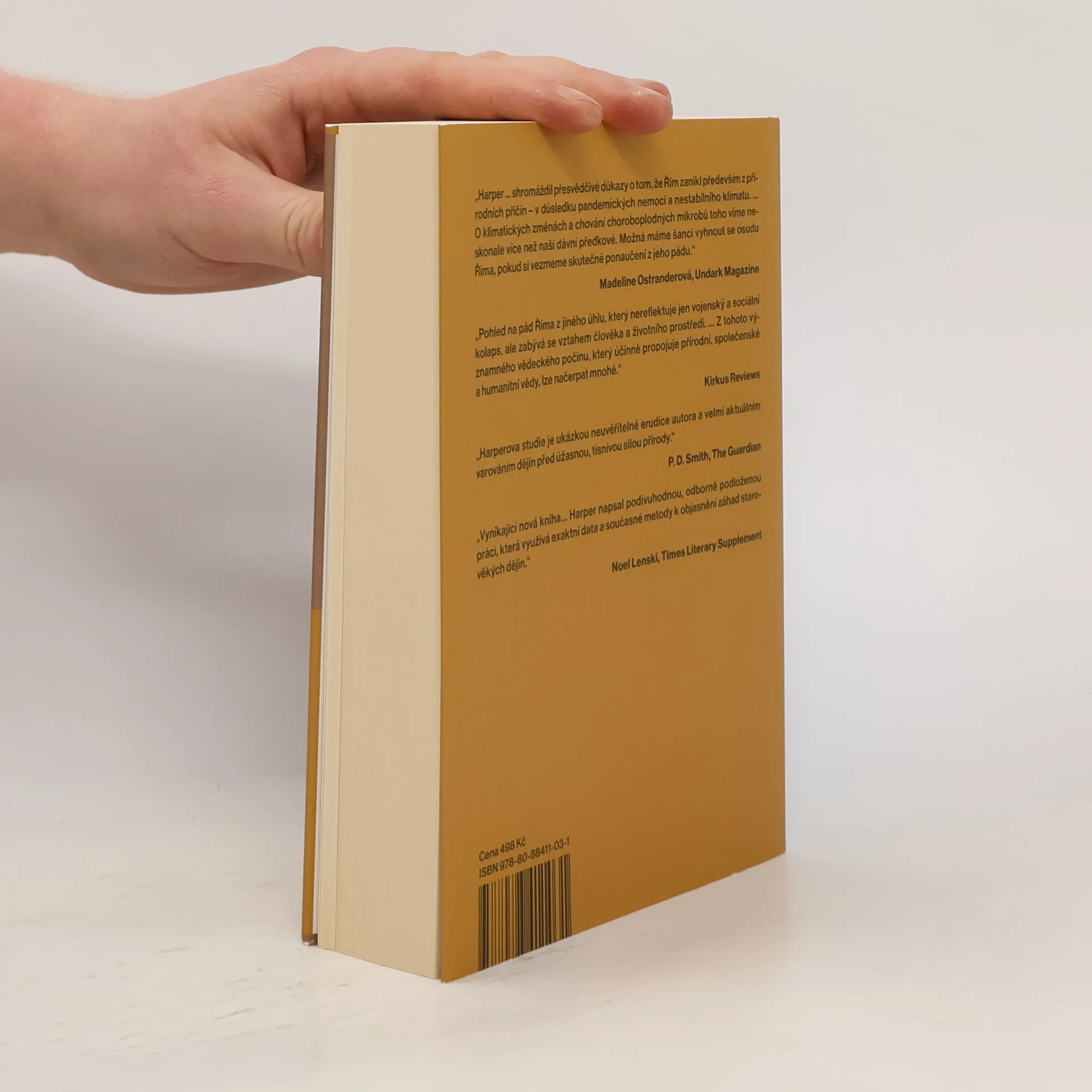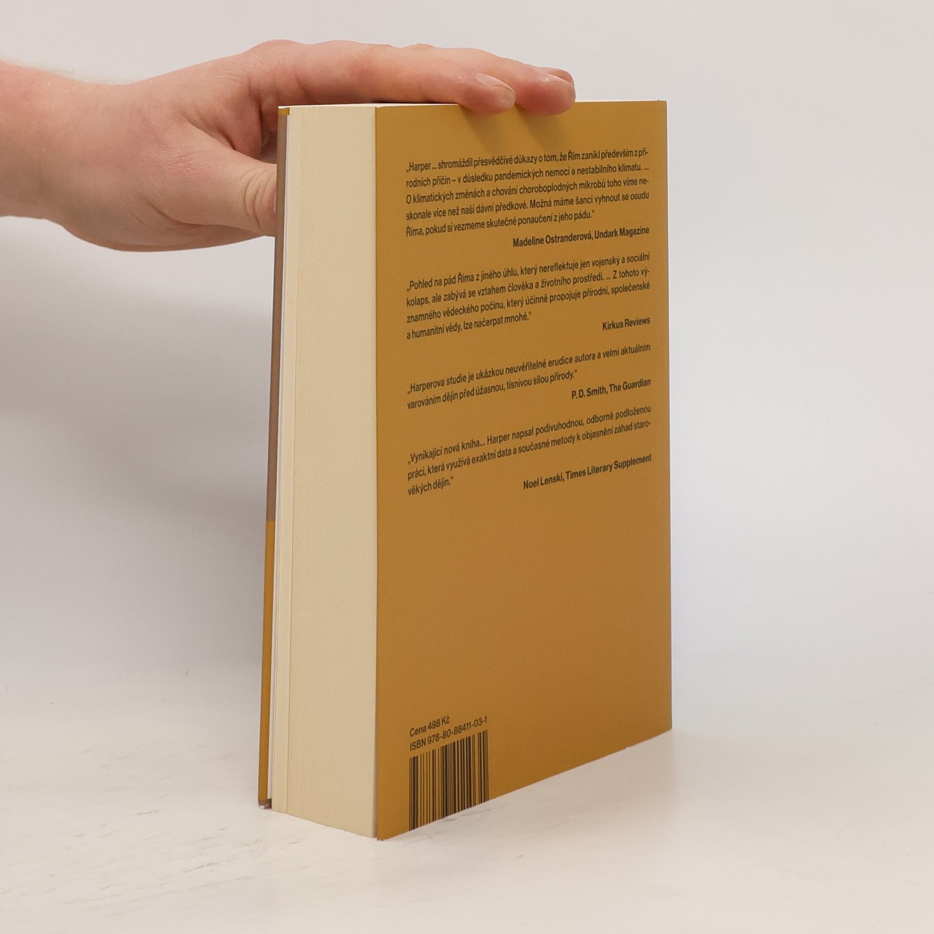 2. vydání. Pozoruhodná práce, napsaná v roce 2017, líčí, jak ničivé pandemie a klimatické změny zpustošily rozsáhlou římskou říši a přispěly k pádu nejmocnější civilizace starověku. Dějepisci jsou po staletí fascinováni pádem římské civilizace. Kyle Harper ve své knize poprvé klade důraz na úlohu, kterou při něm hrály klimatické změny a velké epidemie. Pomocí moderních vědeckých metod a dat z „přírodních archivů“, tedy z ledovcových jader nebo sekvenování DNA, Harper odhaluje, že osud Říma nebyl psán pouze jeho politiky, vojáky a okolními barbary, ale že k němu přispěly i sopečné erupce, sluneční cykly, klimatická nestabilita či devastující účinky rychlého šíření virů a bakterií, které umožnila pokročilá římská infrastruktura. Kolaps Říma byl totiž podle autora zejména triumfem přírody nad lidskou ctižádostí. Ve 2. století, na vrcholu své síly, byl Řím neporazitelnou supervelmocí. O několik století později byly všechny jeho zdroje vyčerpané a říše se topila v politickém chaosu. Kniha popisuje boj Římanů s neustále se zhoršujícími výkyvy podnebí a opakovaně propukajícími epidemiemi pravých neštovic, dýmějového moru a jiných, kterým obležená říše nemohla odolávat navěky. V Harperově břitké reflexi vztahu lidstva a planety slouží Řím jako memento toho, že dějiny naší civilizace jsou klimatickými vlivy a evolucí mikrobů psány v mnohem větší míře, než si ještě dnes dokážeme přiznat. ISBN 978-80-88411-02-4 (chybné)
