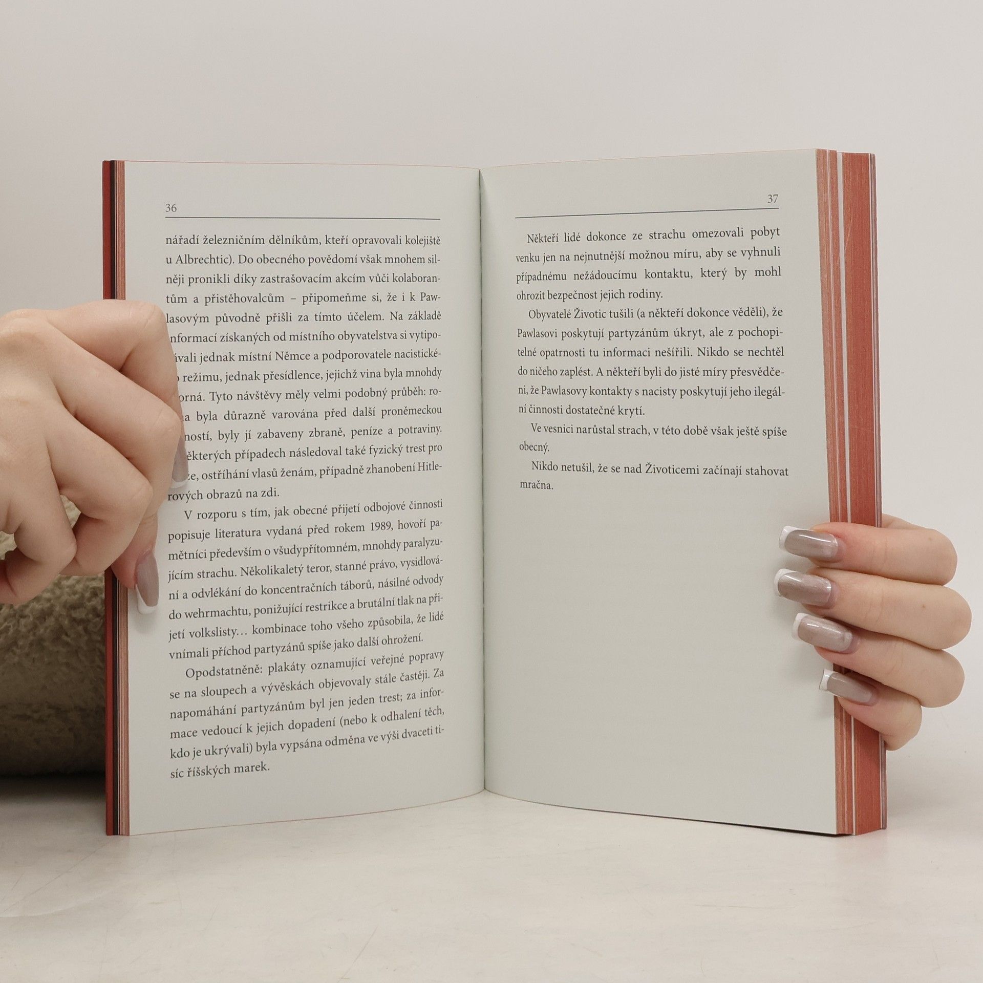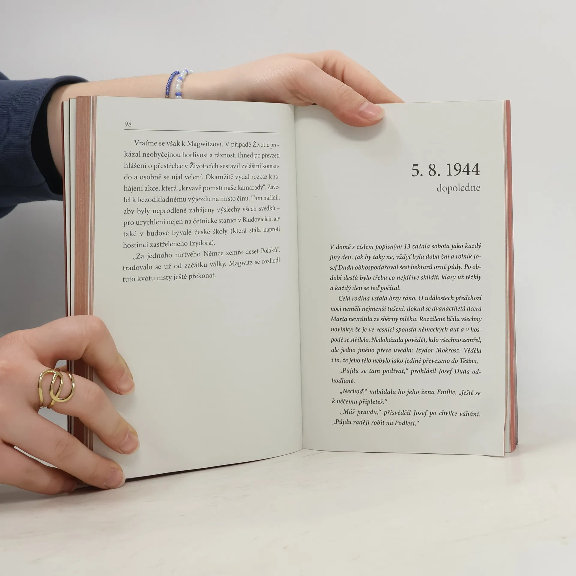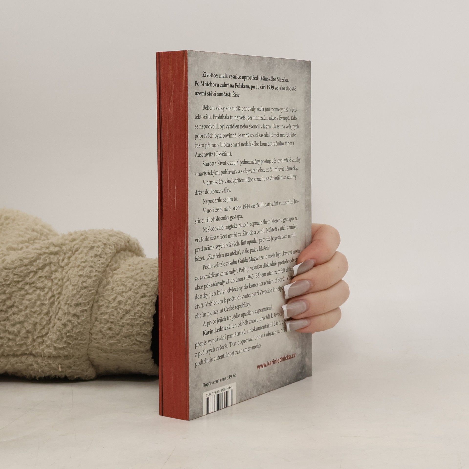 Životice: malá vesnice uprostřed Těšínského Slezska. Po Mnichovu zabrána Polskem, po 1. září 1939 se jako dobyté území stává součástí Říše. Během války zde tudíž panovaly zcela jiné poměry než v protektorátu. Probíhala tu největší germanizační akce v Evropě. Kdo se nepodvolil, byl vysídlen nebo skončil v lágru. Účast na veřejných popravách byla povinná. Stanný soud zasedal téměř nepřetržitě – často přímo v bloku smrti nedalekého koncentračního tábora Auschwitz (Osvětim). Starosta Životic zaujal jednoznačný postoj: pěstoval vřelé vztahy s nacistickými pohlaváry a s obyvateli obce začal mluvit německy. V atmosféře všudypřítomného strachu se Životičtí snažili vydržet do konce války. Nepodařilo se jim to. Karin Lednická ten příběh znovu přivádí k životu. Kombinuje přepis vyprávění pamětníků a dokumentární část, při níž čerpá z pečlivých rešerší. Text doprovází bohatá obrazová příloha, která podtrhuje autentičnost zaznamenaného.
