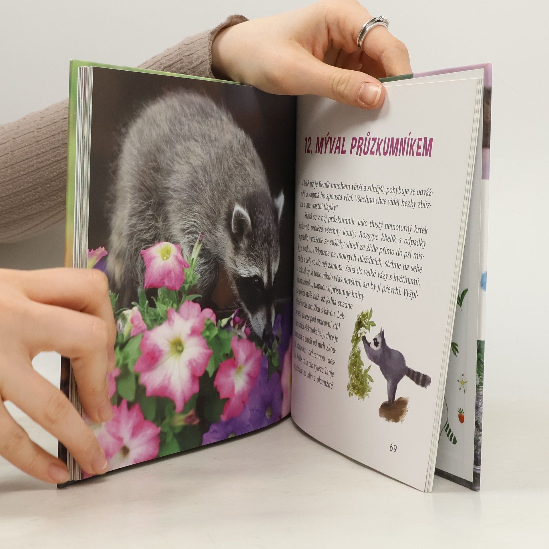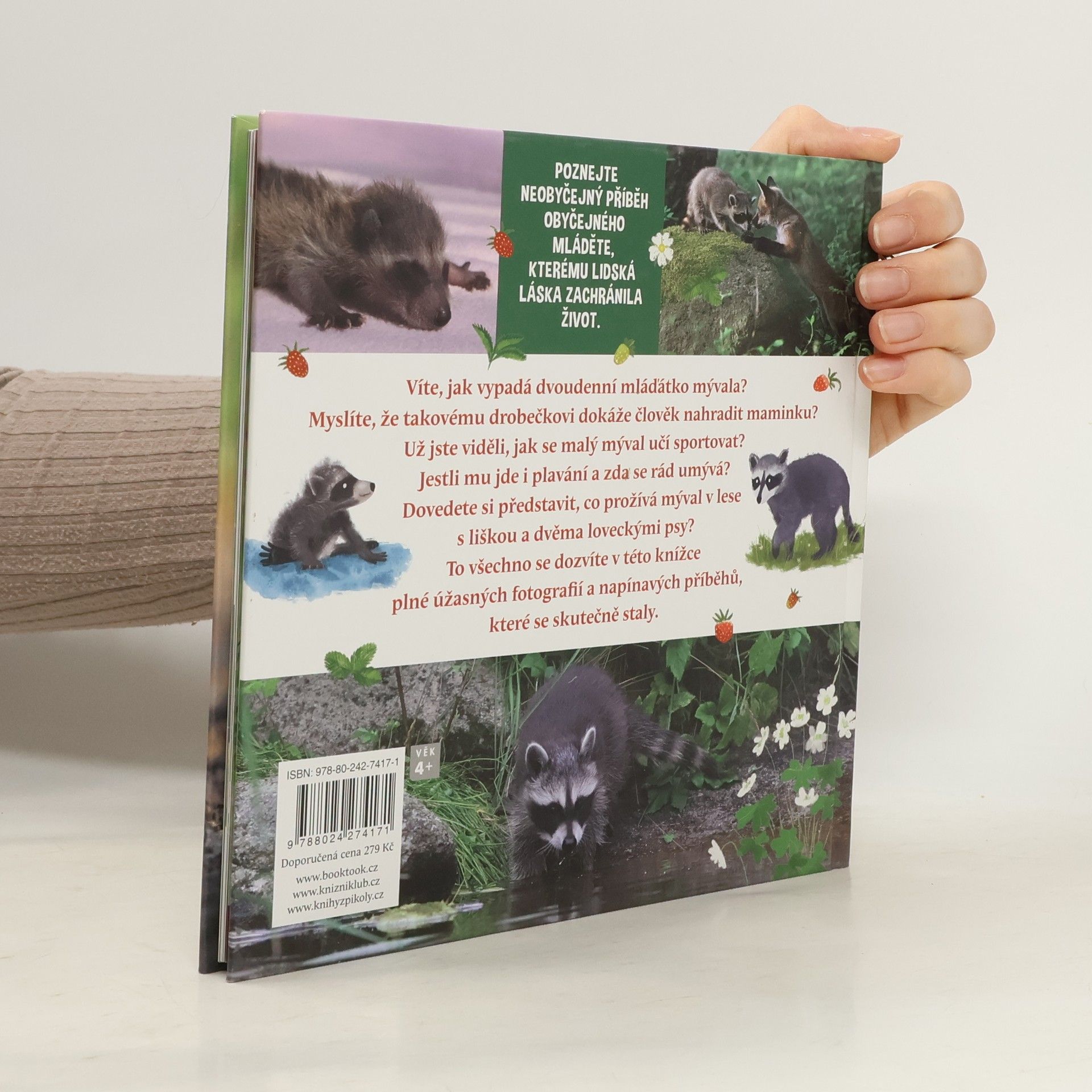 Víte, jak vypadá dvoudenní mláďátko mývala? Myslíte, že takovému drobečkovi dokáže člověk nahradit maminku? Už jste viděli, jak se malý mýval učí sportovat? Uhádli byste, ve kterém sportu se mu daří výborně a co dělá nerad? Jestli mu jde i plavání a zda se rád umývá? Dovedete si představit, co prožívá mýval v lese s liškou a dvěma loveckými psy? Uměli byste mývalovi nabídnout něco dobrého k snědku? To vše a řadu dalších zajímavostí se dozvíte v této knize. Skutečný příběh plný napětí doprovázejí nádherné fotografie.