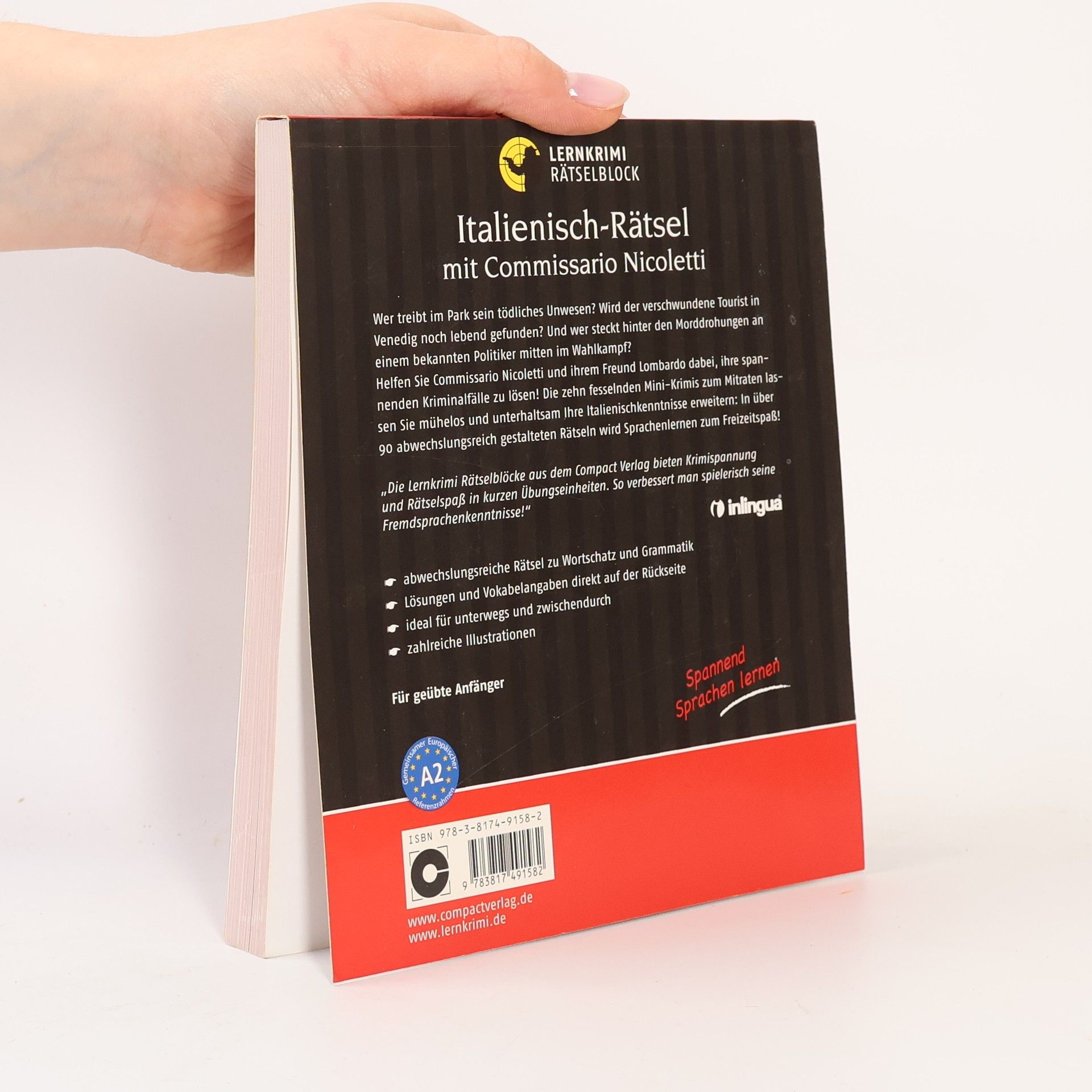 Rätselblock mit 10 in sich abgeschlossenen Mini-Krimis und 90 textbezogenen Rätseln zu Wortschatz und Grammatik auf dem Niveau A2. Die Lösungen und Vokabelangaben befinden sich direkt auf der Rückseite. Lerninhalte werden mit LK-Personal, Land und LK-Setting verbunden. Der Lerner kann auf spielerische, aber effektive Weise sein Sprachwissen mit jedem Rätsel erweitern und dabei sein Lernpensum individuell wählen. Die kurzen, in sich abgeschlossenen Mini- Krimis im modernen und anwenderfreundlichen Layout ermöglichen bequemes Sprachtraining auch unterwegs. Bebildert mit 60-70 Illustrationen
