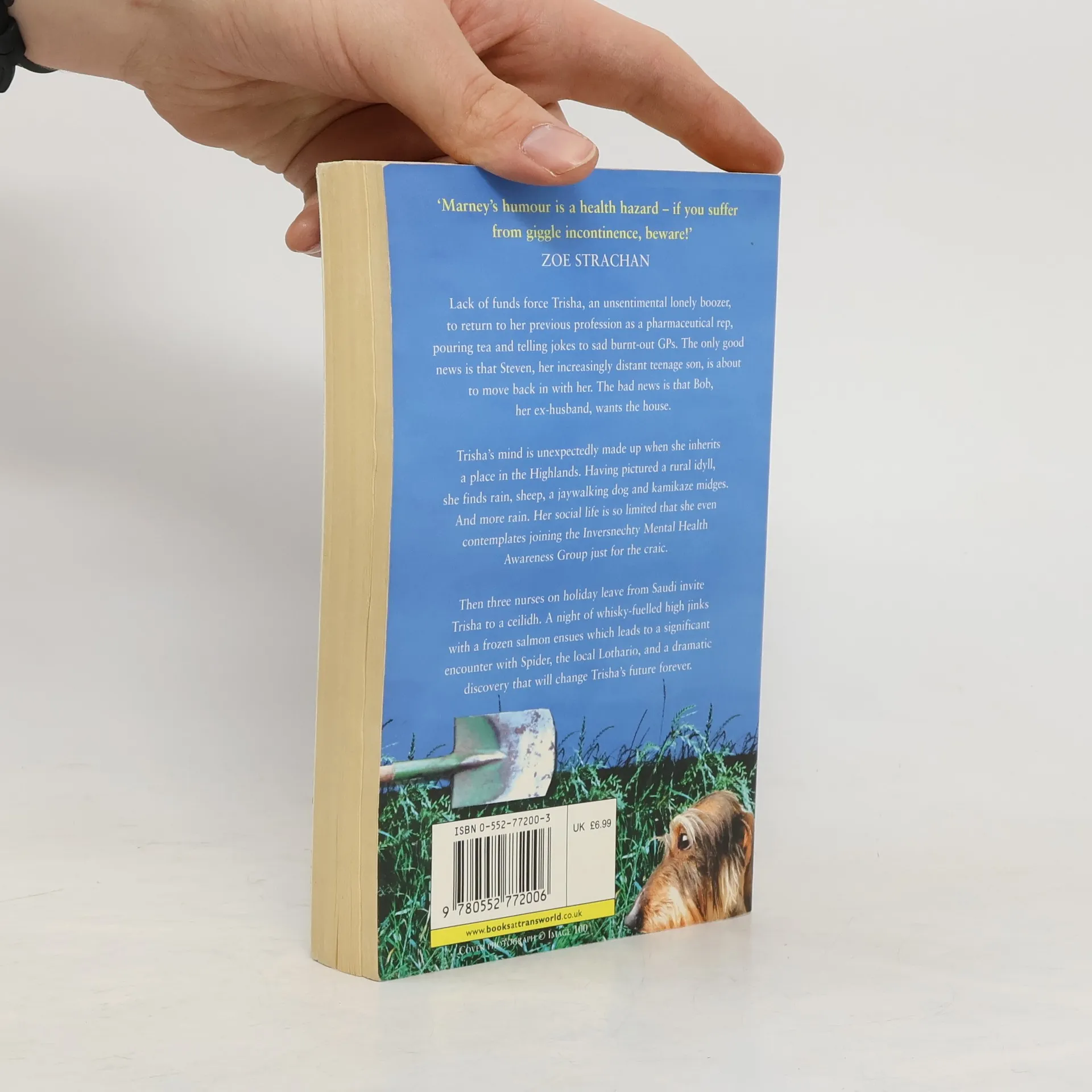 Lack of funds force Trisha, an unsentimental lonely boozer Iving in Glasgow, to return to her previous profession as a pharmaceutical rep, pouring tea and telling jokes to sad burnt-out GPs. The only good news is that Steven, her increasingly distant teenage son, is about to move back in with her. The bad news is that Bob, her ex-husband, wants the house. Trisha's mind is unexpectedly made up when she inherits a place in the Highlands. Having pictured a rural idyll, she finds rain, sheep, a jaywalking dog and kamikaze midges. And more rain. Her social life is so limited that she even contemplates joining the Inversnechty Mental Health Awareness Group just for the craic. Then three nurses on holiday leave from Saudi invite Trisha to a ceilidh. A night of whisky-fuelled high jinks with a frozen salmon ensues which leads to a significant encounter with Spider, the local Lothario, and a dramatic discovery that will change Trisha's future forever.