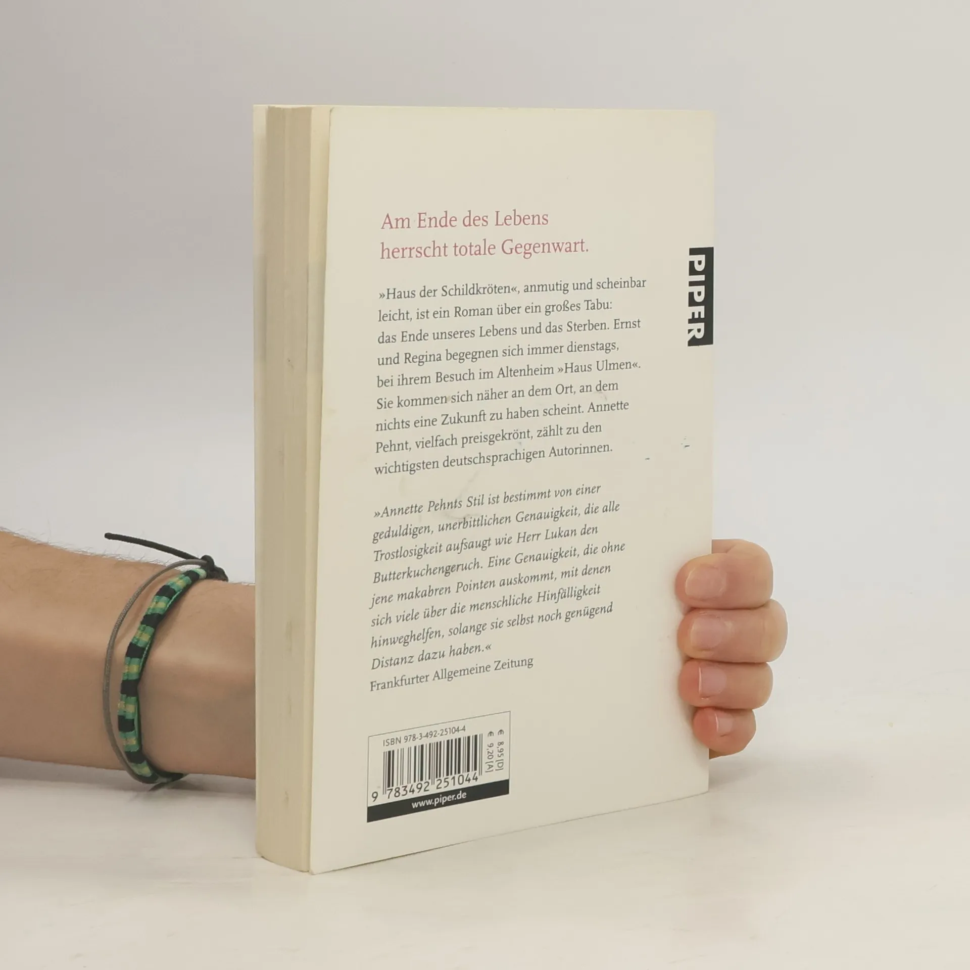 »Haus der Schildkröten«, anmutig und scheinbar leicht, ist ein Roman über ein großes Tabu: das Ende unseres Lebens und das Sterben. Ernst und Regina begegnen sich immer dienstags, bei ihrem Besuch im Altenheim »Haus Ulmen«. Sie kommen sich näher an dem Ort, an dem nichts eine Zukunft zu haben scheint. – Annette Pehnt, vielfach preisgekrönt, zählt zu den wichtigsten deutschsprachigen Autorinnen.