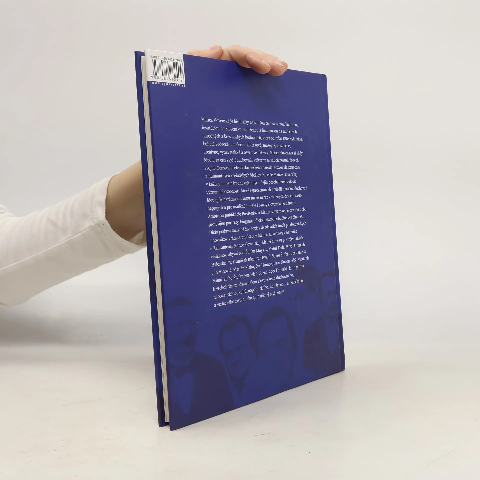 Matica slovenská je najstaršou celonárodnou kultúrnou inštitúciou na Slovensku, založenou na tradičných národných a kresťanských hodnotách. Od roku 1863 vykonáva široké spektrum vedeckých, umeleckých, zbierkových, múzejnych, knižničných, archívnych, vydavateľských a osvetových aktivít, pričom jej cieľom je zvyšovať duchovnú, kultúrnu a vzdelanostnú úroveň slovenského národa a podporovať vlastenectvo a humanitné ideály. Na čele Matice stáli významné osobnosti, ktoré viedli jej duchovnú ideu a kultúrnu misiu aj v ťažkých časoch. Publikácia sa zameriava na predsedov Matice slovenskej, pričom osvetľuje ich profesijné portréty, biografie a národnobuditeľskú činnosť. Obsahuje matičné životopisy dvadsiatich troch predsedníckych činovníkov, vrátane tých, ktorí pôsobili v Amerike a Zahraničnej Matici. Medzi nimi sú významné postavy ako Štefan Moyses, Matúš Dula, Pavol Országh Hviezdoslav a ďalší, ktorí sa podieľali na formovaní slovenského duchovného, náboženského, kultúrneho a vedeckého života, ako aj na rozvoji matičnej myšlienky.