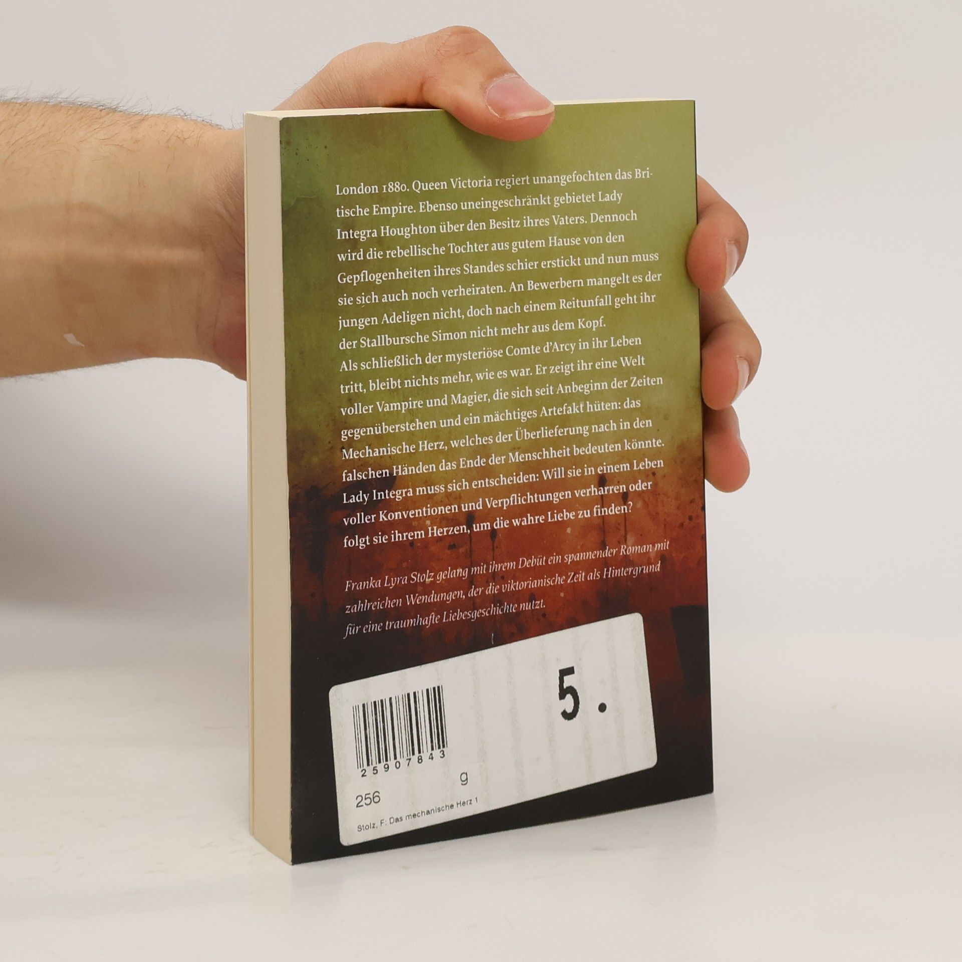 London 1880. Queen Victoria regiert unangefochten das Britische Empire. Ebenso uneingeschränkt gebietet Lady Integra Houghton über den Besitz ihres Vaters. Dennoch wird die rebellische Tochter aus gutem Hause von den Gepflogenheiten ihres Standes schier erstickt und nun muss sie sich auch noch verheiraten. An Bewerbern mangelt es der jungen Adeligen nicht, doch nach einem Reitunfall geht ihr der Stallbursche Simon nicht mehr aus dem Kopf. Als schließlich der mysteriöse Comte d’Arcy in ihr Leben tritt, bleibt nichts mehr, wie es war. Er zeigt ihr eine Welt voller Vampire und Magier, die sich seit Anbeginn der Zeiten gegenüberstehen und ein mächtiges Artefakt hüten: das Mechanische Herz, welches der Überlieferung nach in den falschen Händen das Ende der Menschheit bedeuten könnte. Lady Integra muss sich entscheiden: Will sie in einem Leben voller Konventionen und Verpflichtungen verharren oder folgt sie ihrem Herzen, um die wahre Liebe zu finden? Franka Lyra Stolz gelang mit ihrem Debüt ein spannender Roman mit zahlreichen Wendungen, der die viktorianische Zeit als Hintergrund für eine traumhafte Liebesgeschichte nutzt.
