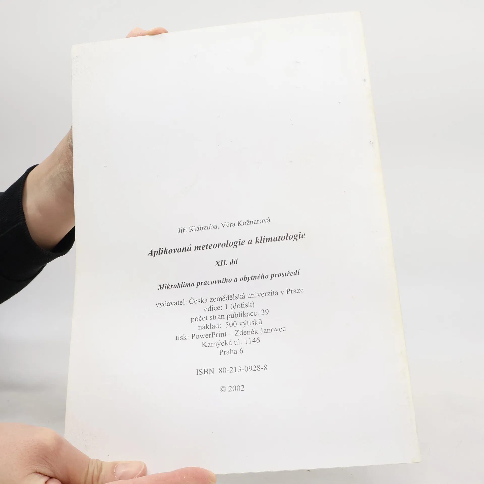 Aplikovaná meteorologie a klimatologie. XII. díl, Mikroklima pracovního a obytného prostředí, Věra Kožnarová, Jiří Klabzuba