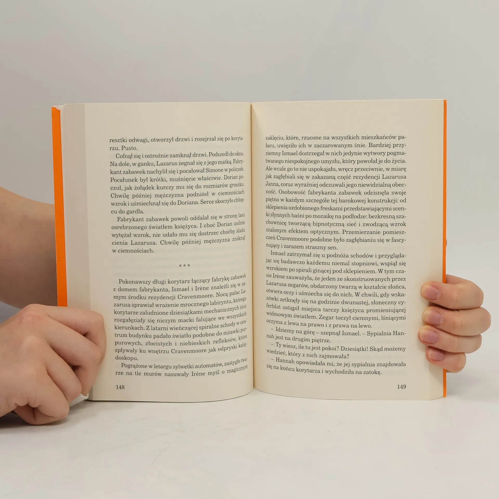 · okrutna tajemnica wspaniałej nadmorskiej rezydencji pełnej wielu ponurych wspomnień · tajemniczy i groźny stwór zamieszkujący normandzki las Cavenmore · tę powieść mógłby napisać młody Julian Carax, bohater Cienia wiatru Jest rok 1936, Simone Sauvelle po śmierci męża zostaje praktycznie bez środków do życia. Dzięki pomocy sąsiada udaje jej się dostać pracę jako ochmistrzyni normandzkiej rezydencji Lazarusa Janna, wynalazcy i właściciela fabryki zabawek. Pani Sauvelle wraz z dziećmi: 14-letnią Irene i młodszym Dorianem wyjeżdża do Normandii. Podczas pierwszej wizyty u gospodarza rodzina Sauvelle zostaje oprowadzone po części domu pełnego przedziwnych mechanicznych zabawek. Dowiaduje się również o dziwnej chorobie żony Lazarusa. Po pewnym czasie Irene zaprzyjaźnia się z Hannah, kucharką wynalazcy, dzięki której poznaje Ismaela. Kiedy Hannah zostaje odnaleziona martwa, Irene i Ismael postanawiają zgłębić tajemnicę jej śmierci. Aby tego dokonać, będą musieli rozwiązać szereg zagadek związanych z Lazarusem i jego żoną.