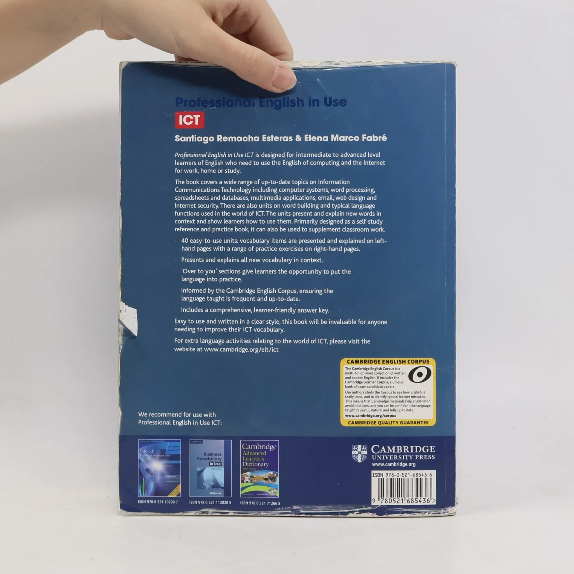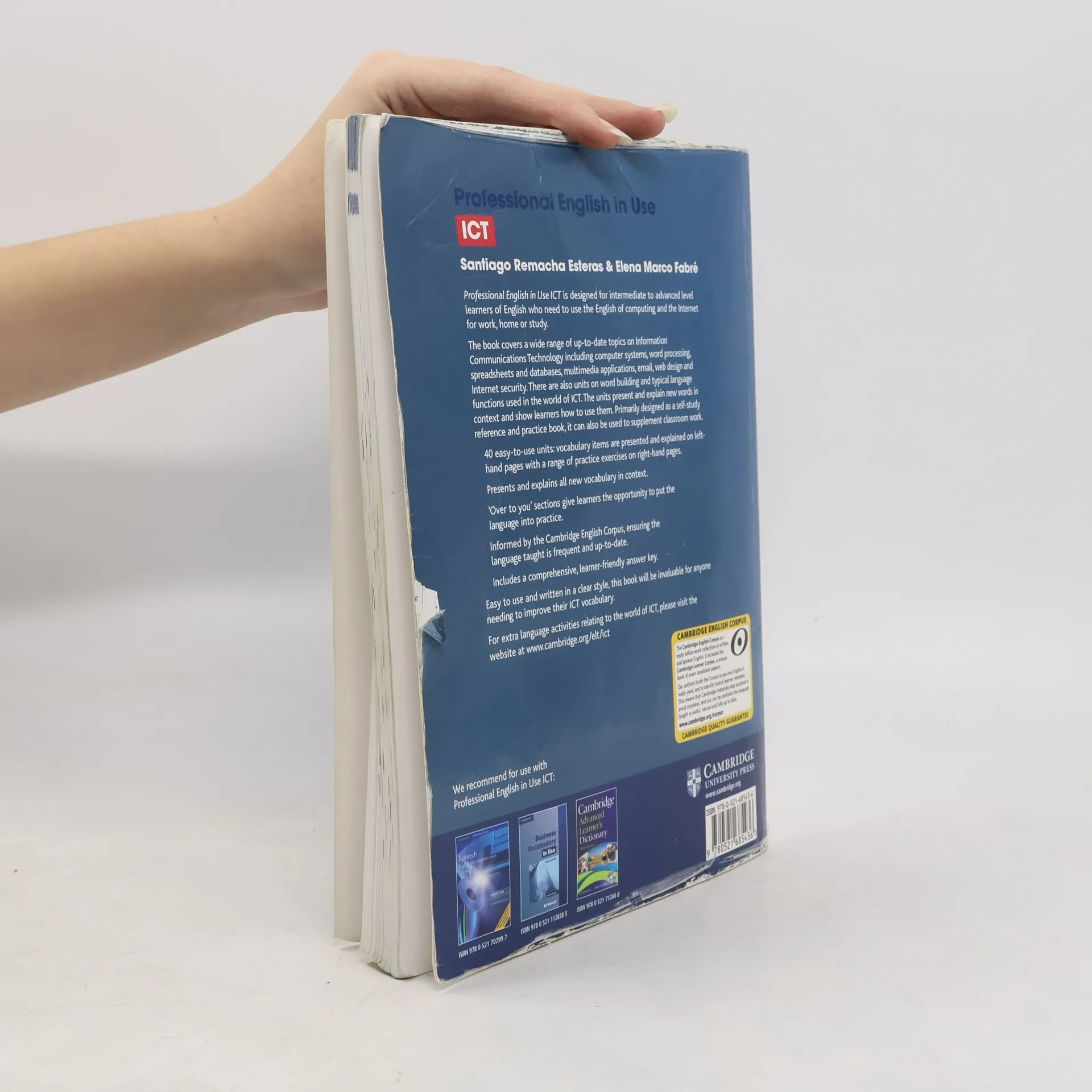 Professional English in Use ICT is suitable for intermediate to advanced level learners of English. The book covers a wide range of topics on Information Communications Technology including word processing, financial software and databases, multimedia applications, email, web design and Internet security. It presents and explains new words in context and shows learners how to use them. Primarily designed as a self-study reference and practice book, it can also be used to supplement classroom work. Easy to use and written in a clear style, this book will be invaluable for anyone needing to improve their ICT vocabulary for work, home or study
