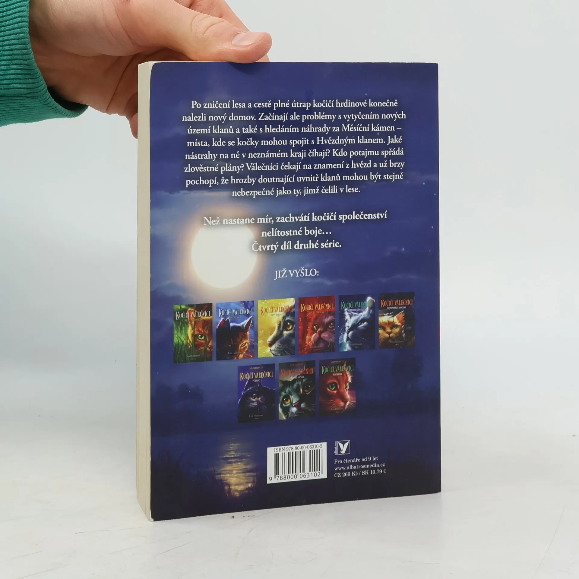 Než nastane mír, zachvátí kočičí společenství nelítostné boje. Čtvrtý díl druhé série. Po zničení lesa a cestě plné útrap kočičí hrdinové konečně nalezli nový domov. Začínají ale problémy s vytyčením nových území klanů a také s hledáním náhrady za Měsíční kámen – místa, kde se kočky mohou spojit s Hvězdným klanem. Jaké nástrahy na ně v neznámém kraji číhají? Kdo potajmu spřádá zlověstné plány? Válečníci čekají na znamení z hvězd a už brzy pochopí, že hrozby doutnající uvnitř klanů mohou být stejně nebezpečné jako ty, jimž čelili v lese.