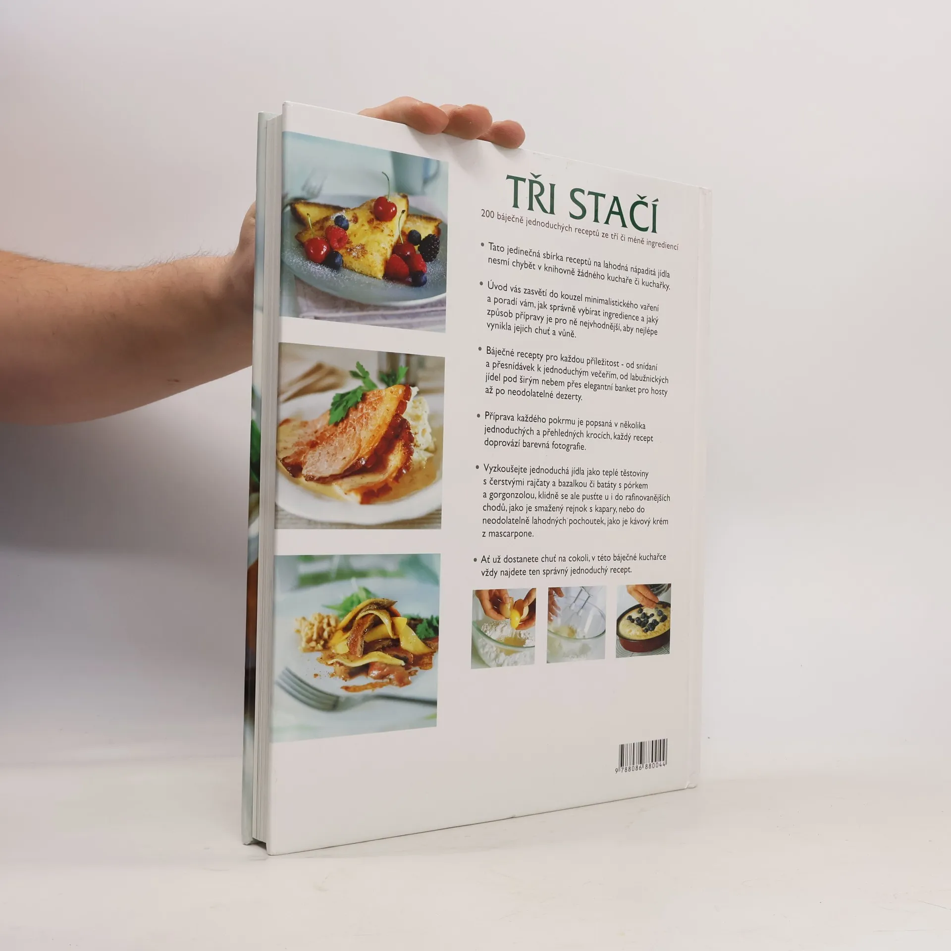 Už nikdy vás žádná návštěva nezaskočí a už nikdy nebudete muset složitě přemýšlet, jestli máte doma všechny potřebné suroviny Naše nevšední kuchařka TŘI STAČÍ vám poradí, jak si zásobit spíž, aby vám už nikdy nic nechybělo a napříště vám stačilo dokoupit ke každému jídlu pouhé tři ingredience, ze kterých zvládnete připravit mnoho skvělých chodů. Z nich pak jednoduše poskládáte vydatnou snídani, rychlý oběd i slavnostní večeři o několika chodech. Najdete tu recepty na rychlá jídla, která oceníte v časové tísni, ale i na vynikající obědy či večeře, na které budete sice potřebovat o něco více času, ale zato si vy i vaši blízcí báječně pochutnáte.