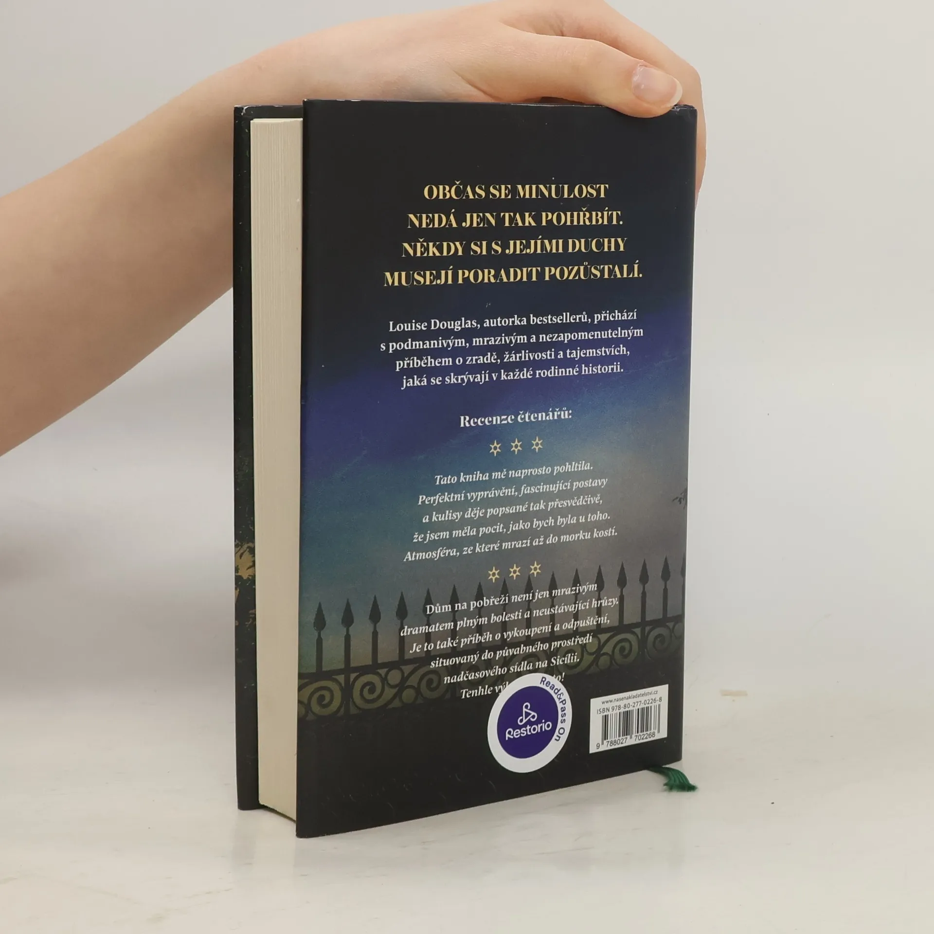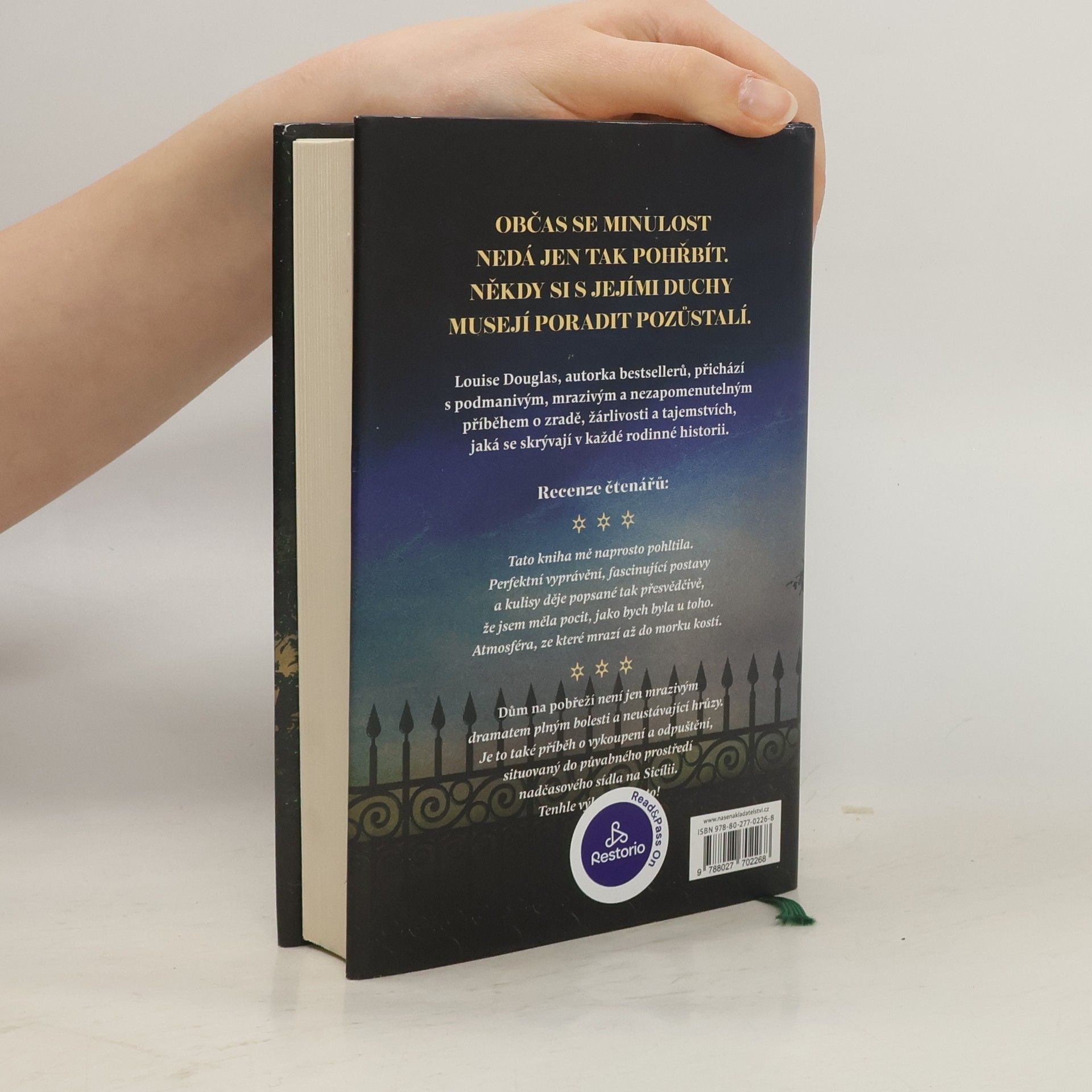 Edie se velice uleví, když její bývalá tchýně Anna zemře. Edie Annu viní z nehody, která jí zničila rodinu. Takže když ji Annina poslední vůle vyláká na Sicílii a do dlouho opuštěné Villa della Madonna del Mare, je jí jasné, o co Anně šlo. Má za to, že Anna i po své smrti tahá za nitky, aby ji dala opět dohromady se svým synem. Edie je proto odhodlaná odjet z Itálie co nejdřív. Ale ještě než to stihne, začne vila vydávat svá záhadná tajemství. Kdo jsou ty dívky na Anniných fotkách z dětství a proč někdo jednu z nich vyškrábal? Proč někdo nebo něco nechce, aby se zaobírali minulostí? Vila je místo, kde se staří duchové cítí doma. Ale jejich odkaz je potřeba uložit k věčnému spánku, aby Edie a Joe mohli jít dál... Autorka bestsellerů Louise Douglas se vrací s podmanivým, mrazivým a nezapomenutelným příběhem o zradě, žárlivosti a tajemstvích skrývajících se v každé rodinné historii.