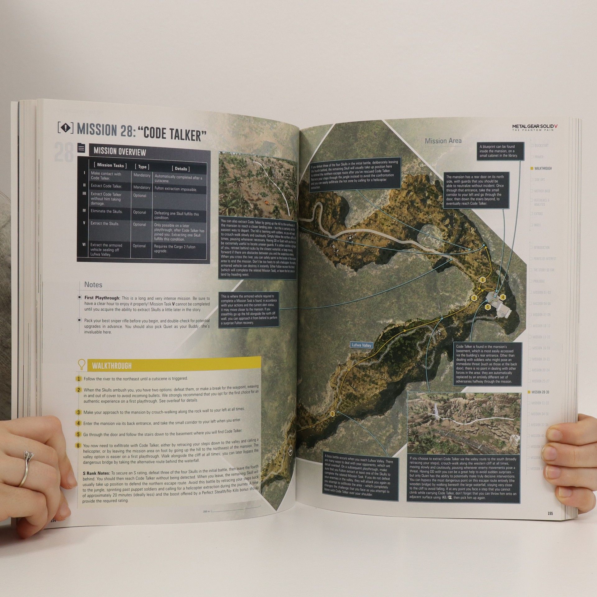 A guide to Metal Gear Solid V: The Phantom Pain, an open world action-adventure stealth video game, which was developed by Kojima Productions, and directed, designed, co-produced and co-written by Hideo Kojima for Microsoft Windows, PlayStation 3, PlayStation 4, Xbox 360 and Xbox One. The game is the eleventh canonical and final installment in the Metal Gear series and the fifth within the series' chronology. It serves as a sequel to Metal Gear Solid V: Ground Zeroes, and a continuation of the narrative established there, and a prequel to the original Metal Gear game. It carries over the tagline of Tactical Espionage Operations first used in Metal Gear Solid: Peace Walker. Set in 1984, the game follows the mercenary leader Punished "Venom" Snake as he ventures into Afghanistan and the Angol--Zaire border region to exact revenge on the people who destroyed his forces and came close to killing him during the climax of Ground Zeroes.--Information taken from http://www.digplanet.com