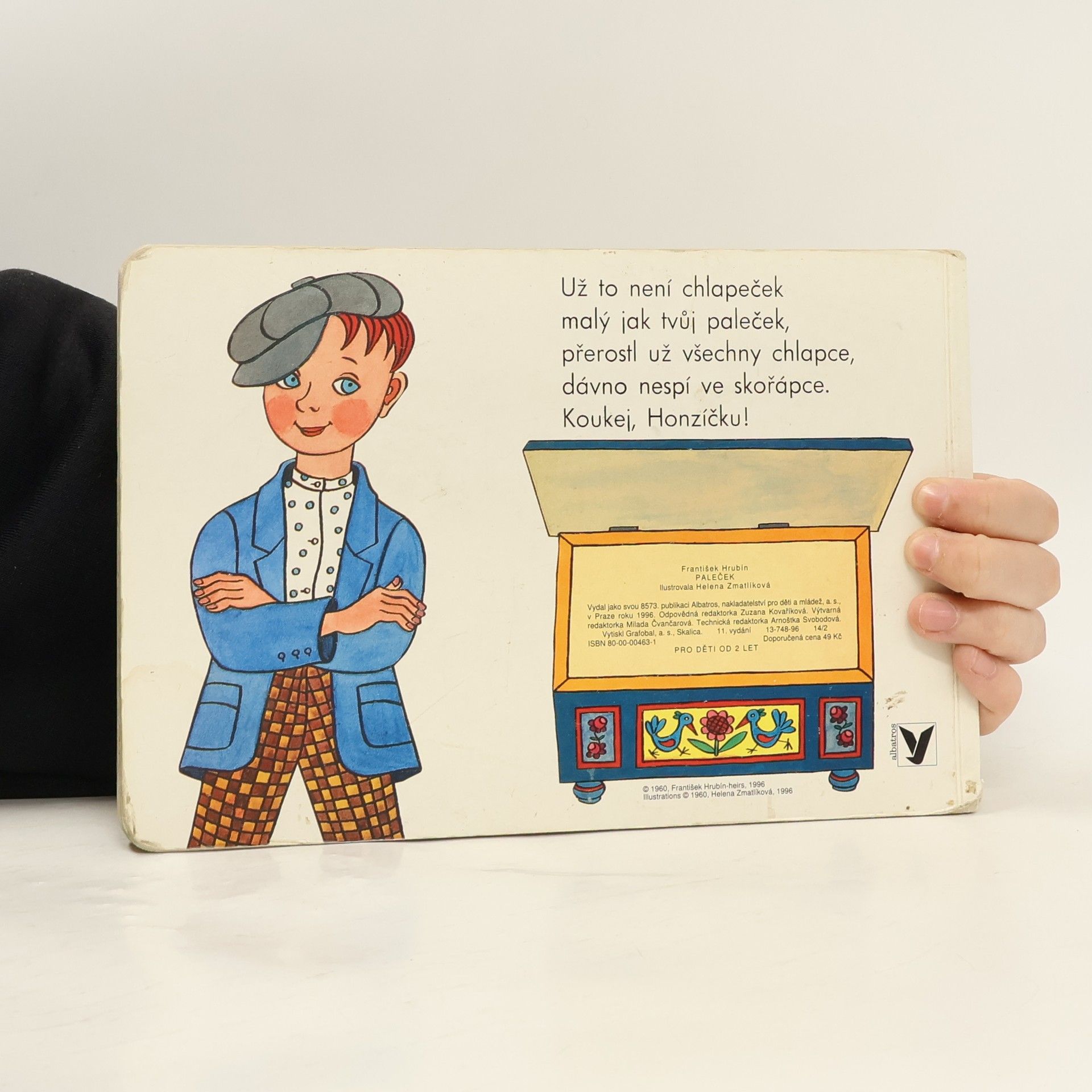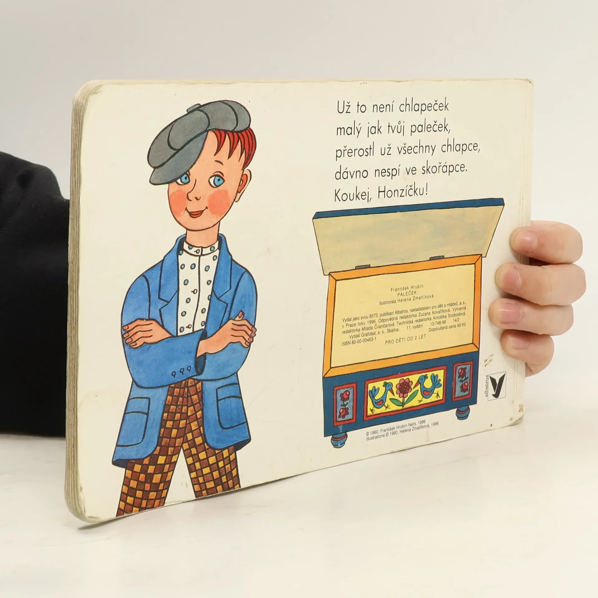 Pohádka přebásněná Františkem Hrubínem, klasikem české poezie, je doprovázena půvabnými obrázky Heleny Zmatlíkové. Hezké vyprávění je o chlapečkovi, který byl tak malinký, že se koupal v náprstku, spal v ořechové skořápce a snídal tři máčky. Zkrátka byl to Paleček!