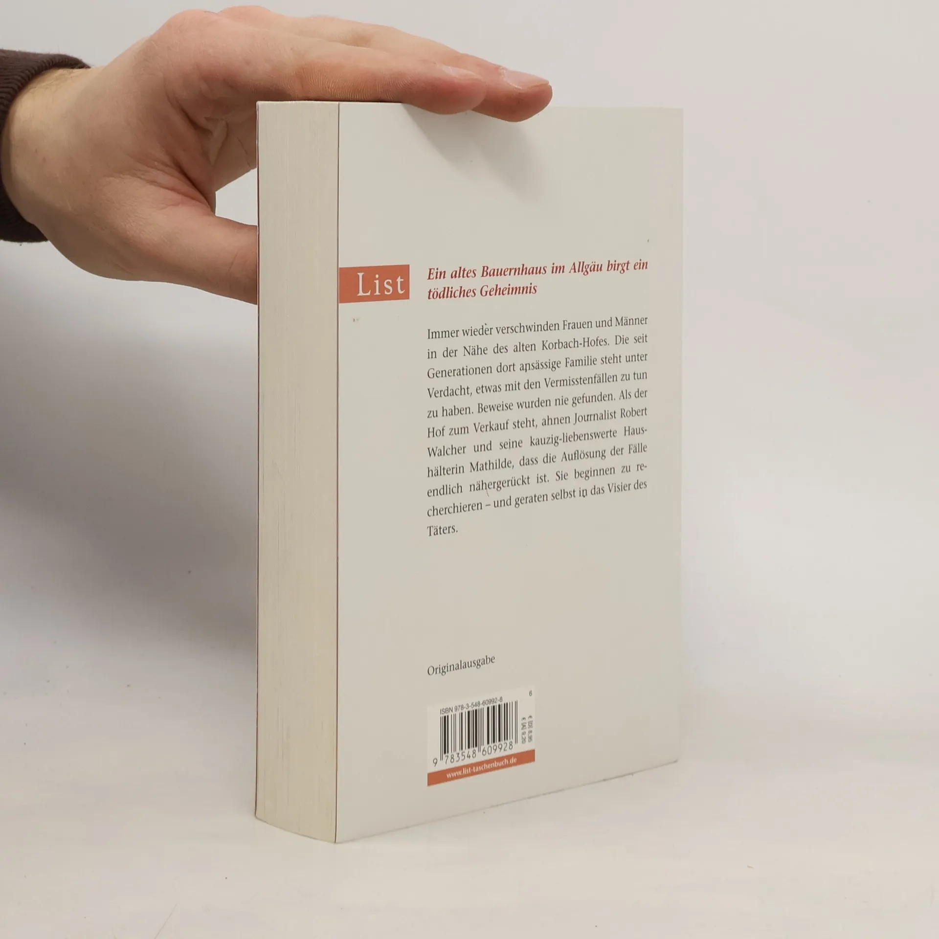 Immer wieder verschwinden Frauen und Männer in der Nähe des alten Korbach-Hofes. Die seit Generationen dort ansässige Familie steht unter Verdacht, etwas mit den Vermisstenfällen zu tun zu haben. Beweise wurden nie gefunden. Als der Hof zum Verkauf steht, ahnen Journalist Robert Walcher und seine kauzig-liebenswerte Haushälterin Mathilde, dass die Auflösung der Fälle endlich näher gerückt ist. Sie beginnen zu recherchieren und stoßen auf eine Familiengeschichte, die über Generationen zahlreiche Opfer gefordert hat ? und bald geraten auch sie selbst in das Visier des Täters.