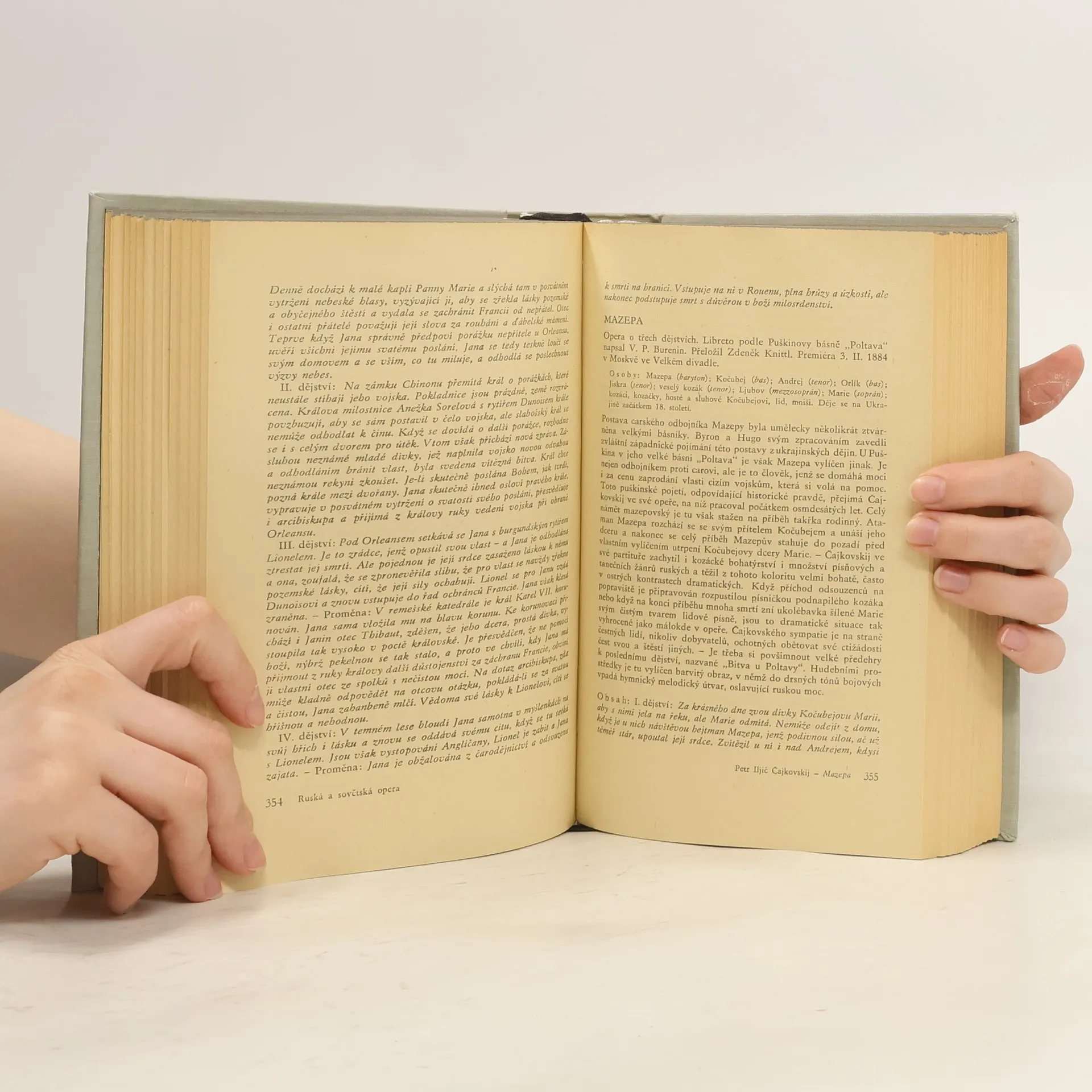 Spolupracovali dr. Lubomír Dorůžka, dr. Emil Ludvík a dr. Jarmila Brožovská, úvodní studii napsal dr. Mirko Očadlík. Souborná informační kniha o operních skladatelích a jejich dílech je proti poslední naší příručce toho druhu (J. Branberger, „Svět v opeře“ 1946) mnohem obsáhlejší, zejména pokud jde o opery slovanské. Díla jsou seřazena skupinově podle historického vývoje národních kultur kromě kapitoly úvodní, věnované autorům klasickým. Opery téhož skladatele jsou řazeny podle data premiér. Rychlou orientaci v knize umožňují rejstříky: skladatelů, autorů libret a literárních předloh, názvů oper. U každého díla je podán podrobný rozbor námětu, doby, okolností, za nichž vznikalo, dále volné vyprávění obsahu děje podle jednotlivých aktů a konečně výčet charakteristických scén a arií. Notové ukázky připojeny nejsou, zato však kniha přináší stručné životopisné portréty skladatelů a seznam česky vydané literatury o nich. Úvodní kapitoly k jednotlivým oddílům a historický výklad o opeře jako uměleckém útvaru napsal M. Očadlík.