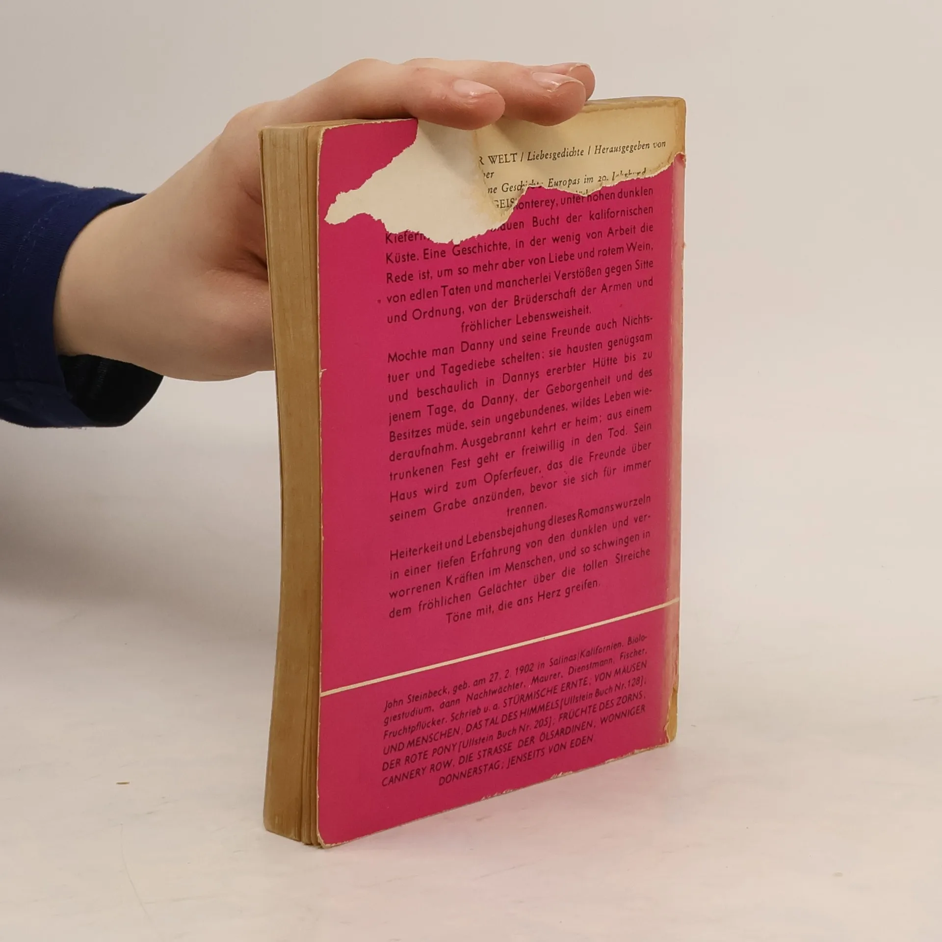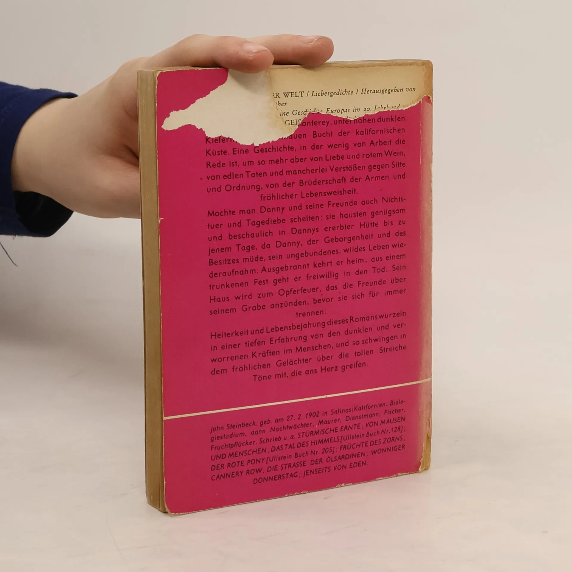 Wie einer den Verstand verliert »Steinbeck hat sich diesem deftigen und duftigen Gesindel von der Küste Kaliforniens zugewendet, weil er es liebte.« Alfred Andersch Als Danny aus dem Krieg nach Monterey zurückkehrt, erfährt er zu seiner großen Verblüffung, daß er der Erbe zweier Häuser ist. Die auf ein Saufgelage folgende Feuersbrunst reduziert seinen Besitz jedoch schnell auf die Hälfte. In der übriggebliebenen Behausung residieren außer ihm schließlich fünf weitere »Obdachlose«, u. a. der »Pirat« mit seinen fünf Hunden. Fröhlich leben die Freunde bei Wein, Weib und Gesang in den Tag hinein und warten auf »das tägliche Wunder des Essens«, dem sie allerdings mit viel List und Tücke kräftig nachhelfen müssen. Das Leben könnte , so schön sein. Doch eines Tages gerät Danny ins Brüten und fängt ganz augenscheinlich an, den Verstand zu verlieren ...