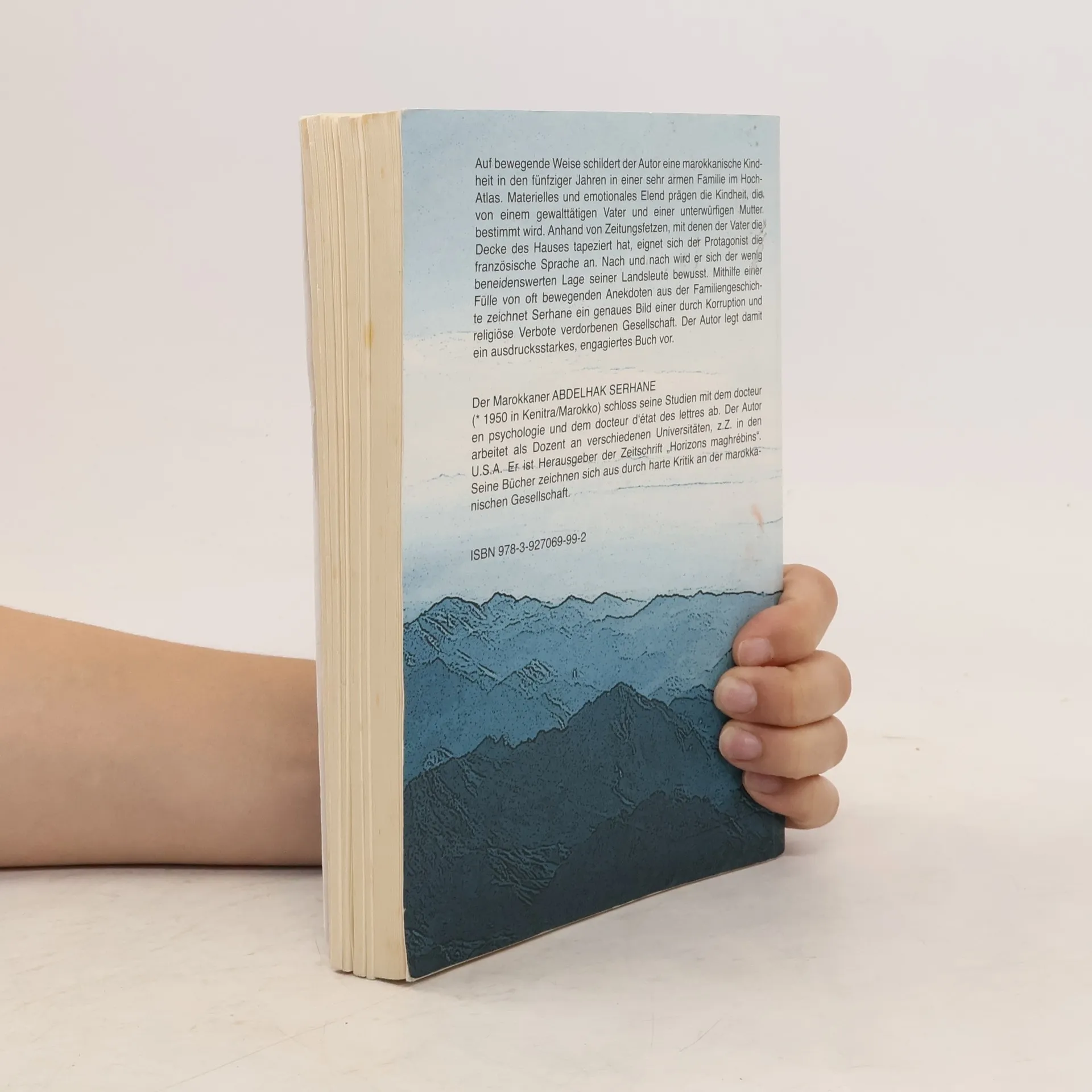Auf bewegende Weise schildert der Autor eine marokkanische Kindheit in einer sehr armen Familie im Hoch-Atlas. Materielles und emotionales Elend prägen die Kindheit, die von einem gewalttätigen Vater und einer unterwürfigen Mutter bestimmt wird. Anhand von Zeitungsfetzen, mit denen der Vater das zugige Haus tapeziert, eignet sich der Protagonist die französische Sprache an. Und er wird sich der Lage seiner Landsleute bewusst. Mithilfe einer Fülle von oft bewegenden Anekdoten zeichnet Serhane das Bild einer durch Korruption und religiöse Verbote verdorbenen Gesellschaft. Ein ausdrucksstarkes, engagiertes Buch.