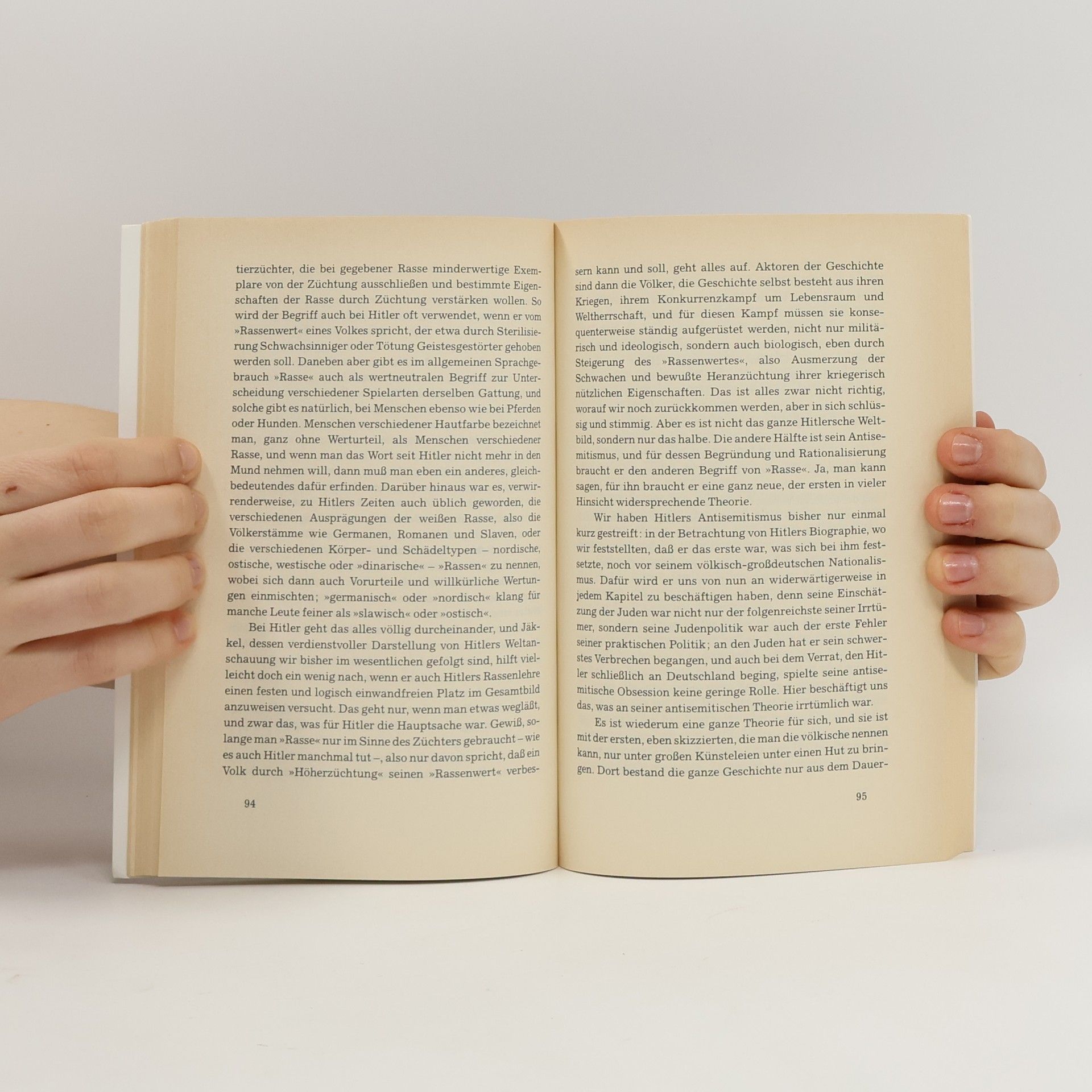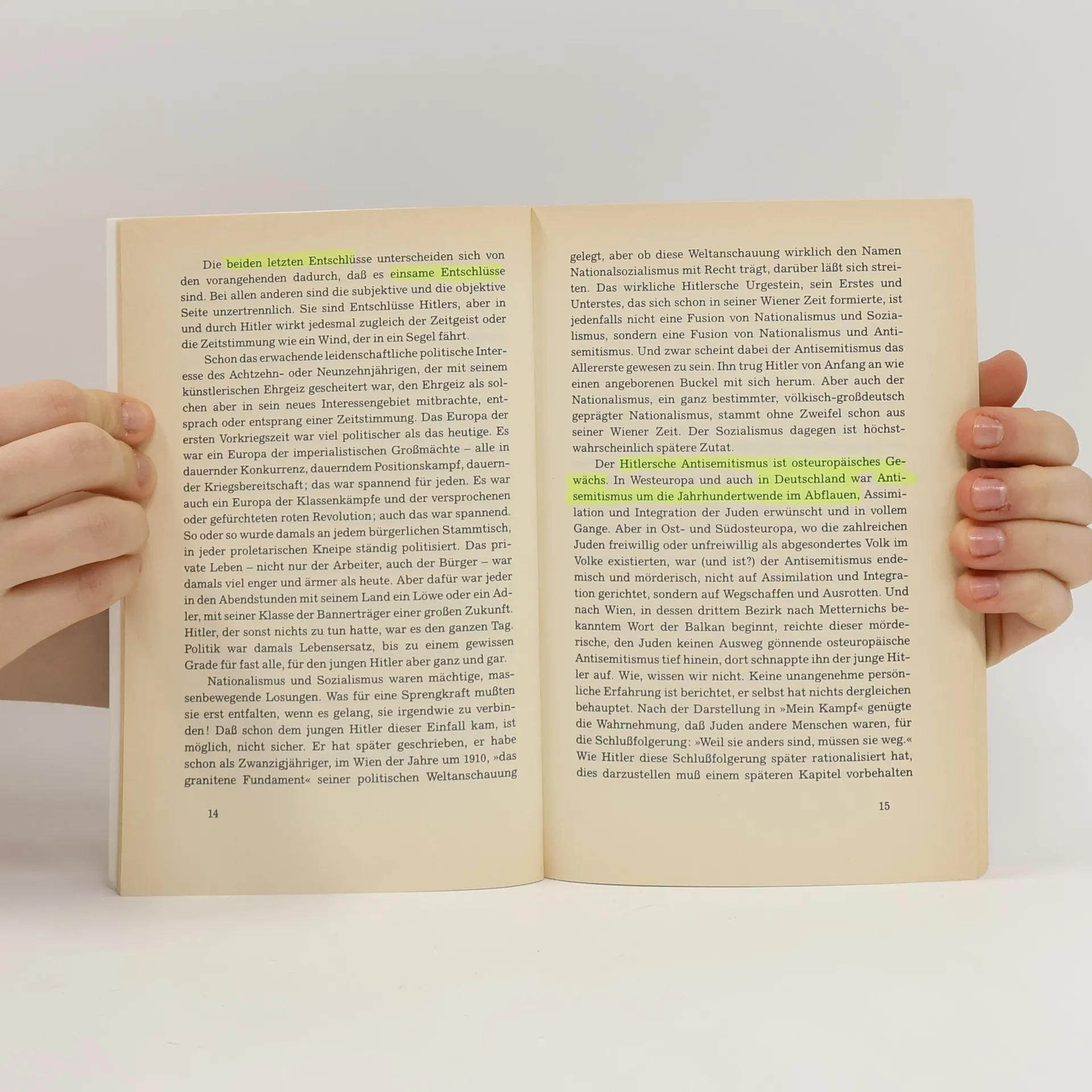„Adolf Hitlers Vater war ein Aufsteiger. (...) Der Sohn begann als Absteiger.“ Mit diesen Worten beginnt Sebastian Haffners eindringliches und für seine Originalität sowie Klarsicht gerühmtes Werk über Hitler. Dieses 1978 erschienene Buch hat bis heute nichts von seiner Bedeutung verloren und leistet einen wesentlichen Beitrag zum Verständnis der deutschen Vergangenheit und Gegenwart. Haffner, als einer der originellsten Publizisten der deutschen Nachkriegspresse bekannt, wurde durch dieses Buch weltberühmt. Sein Verdienst liegt darin, Hitler unverstellt zu betrachten. Die Kapitelüberschriften – „Leben“, „Leistungen“, „Erfolge“, „Irrtümer“, „Fehler“, „Verbrechen“, „Verrat“ – zeugen von dieser Herangehensweise. Haffner zeigt, dass der Verlauf der Geschichte nicht zwangsläufig in eine Katastrophe mündet, sondern von Menschen und Persönlichkeiten beeinflusst wird, sowohl im Guten als auch im Bösen. Für alle, die das Buch noch nicht kennen oder es erneut lesen möchten, sei die Empfehlung Guido Knopps mit auf den Weg gegeben: „Der Vorteil dieses Buches liegt vor allem darin, dass es keine weitere Biographie ist. Auf 200 Seiten über Hitler zu schreiben, groß bedruckt und ohne Fußnoten, macht den Blick frei für Hauptsache und Hauptlinien. Das lädt ein zur sofortigen Gesamtlektüre.“