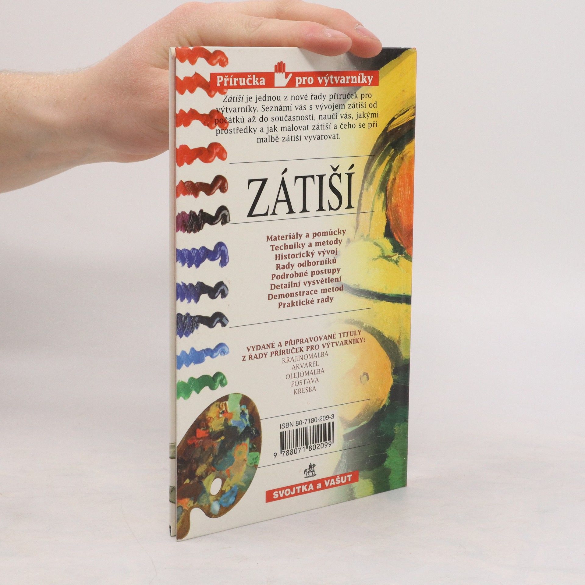 Kniha je věnována tématu zátiší. Výtvarným materiálům, pracovním prostředkům, postupům a technikám jeho malování.