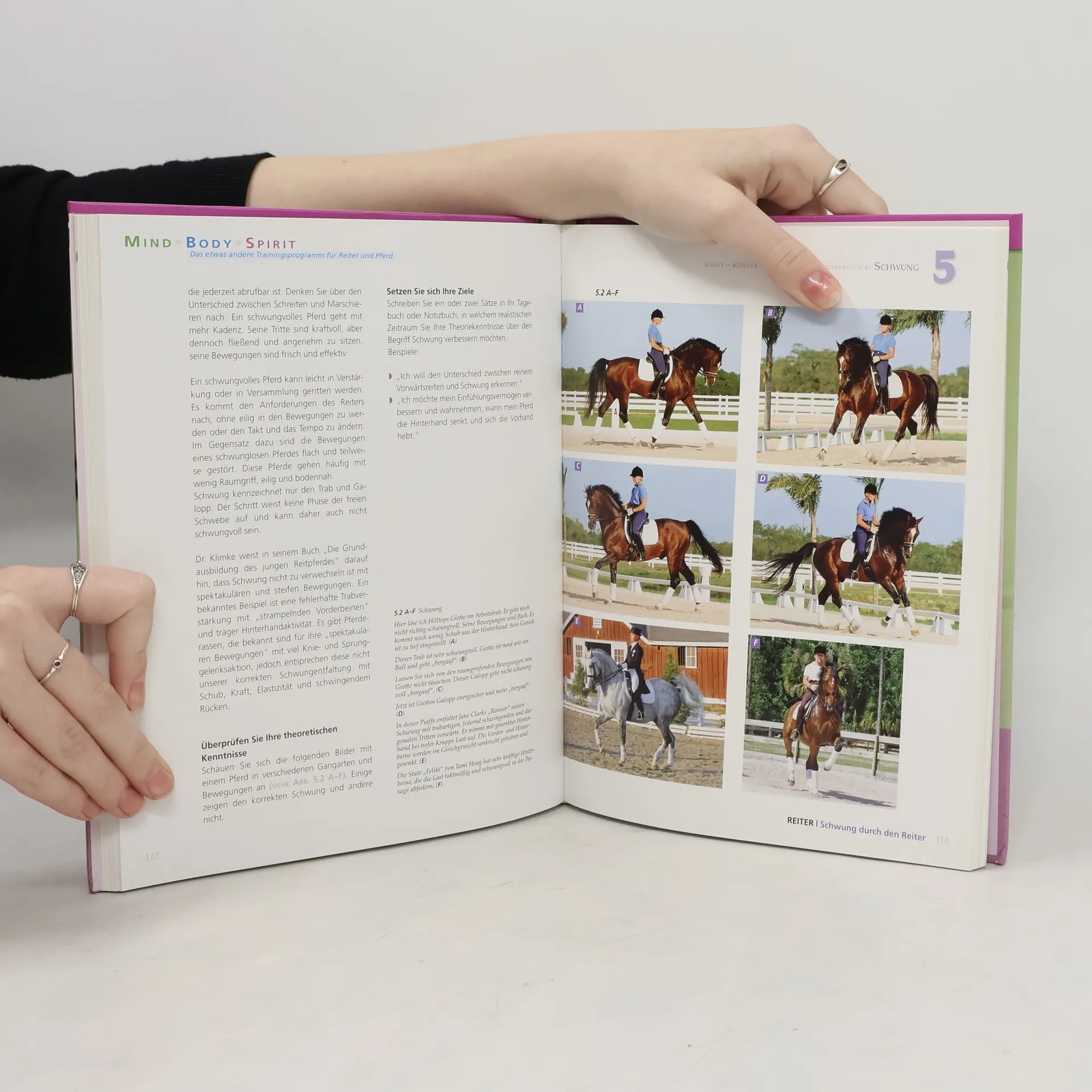 Aufbauend auf den Elementen Geist-Körper-Seele bietet das Trainingsprogramm Übungen - getrennt für Reiter und Pferd - die den Schlüssel zur erfolgreichen Dressur liefern: aufrechter, losgelassener, balancierter Sitz.