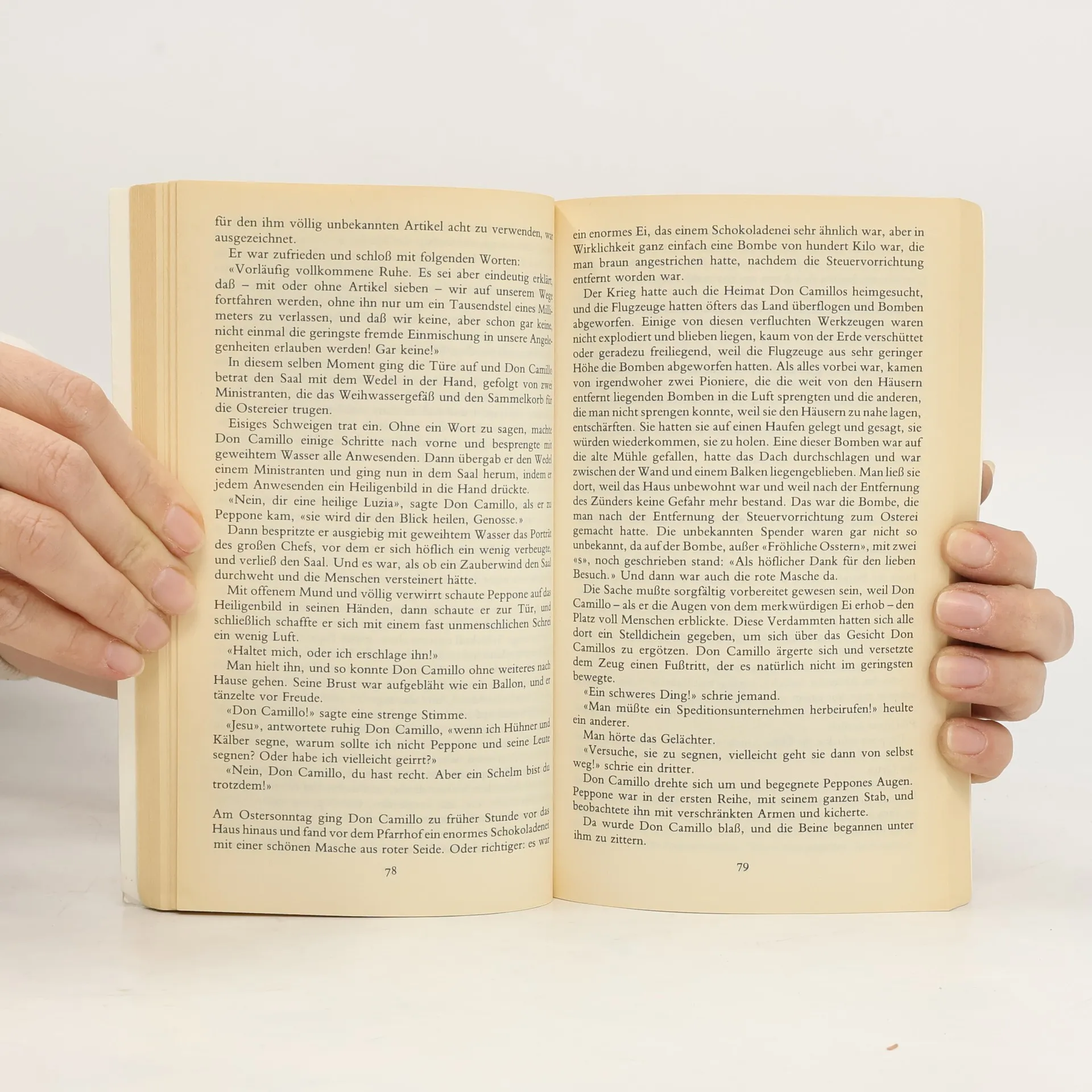Kein Wunder, daß dieser (mit dem unvergeßlichen Fernandel verfilmte) Roman eines der erfolgreichsten Bücher unserer Zeit wurde. In einer Epoche unmenschlicher Kämpfe zwischen den Ideologien versöhnen die pointenknisternden Erlebnisse eines rauflustigen Landpfarrers und seines hitzköpfigen politischen Rivalen durch ihre verblüffende Komik und verschmitzte Lebensklugheit. Die politischen Konflikte im heutigen Italien bezeugen erneut die zeitlose Aktualität dieses Bestsellers der Weltliteratur.