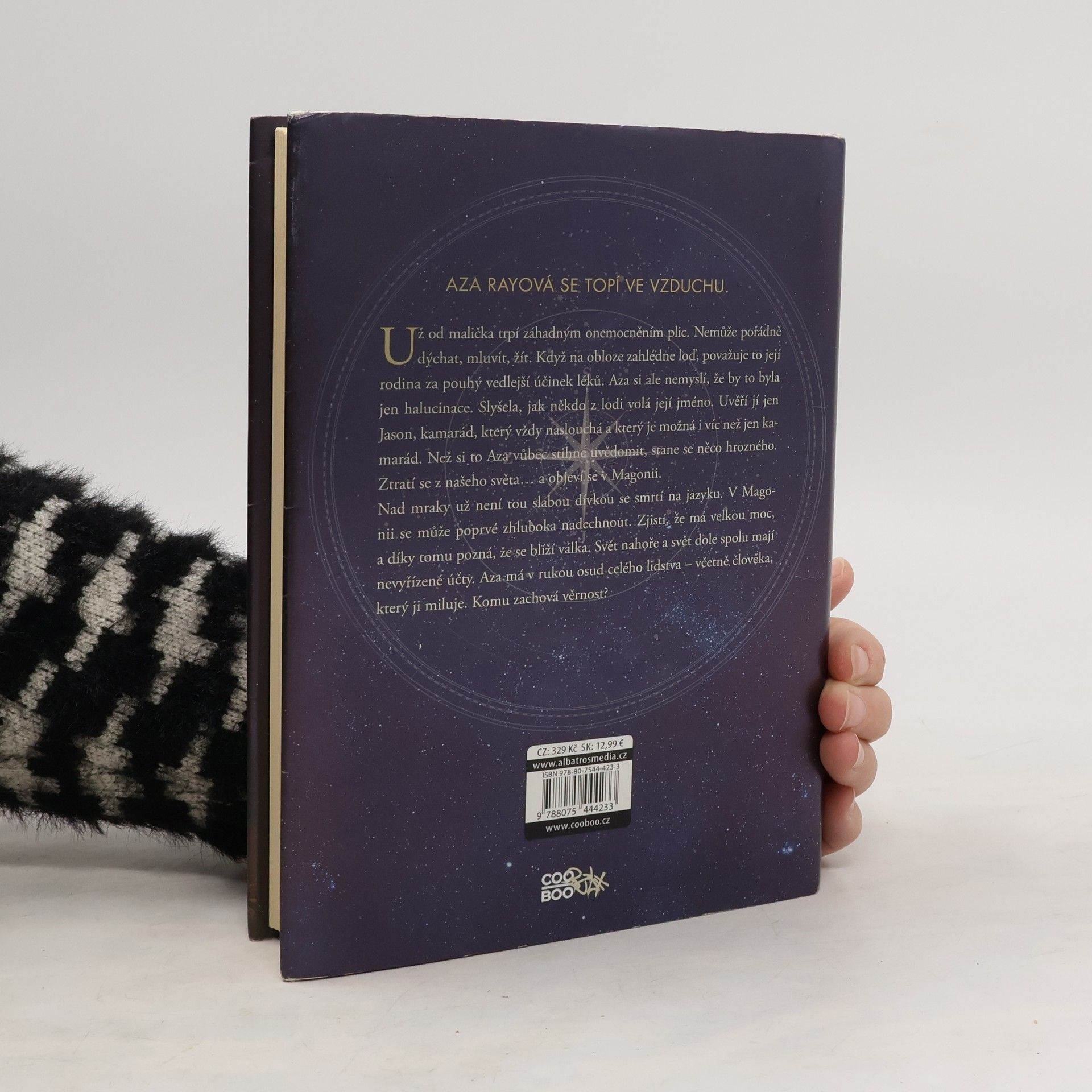 Aza Ray se topí ve vzduchu. Aza trpí už od narození tajemnou plicní chorobou, kvůli které se jí hůře dýchá, mluví a i žije. Když dívka zahlédne jednoho dne na nebi tajemný koráb, její rodina to přisoudí vedlejším účinkům léků. Jenže Aze to jako halucinace vůbec nepřipadalo. Slyšela, jak na ni někdo z lodi volá. Jediný, kdo ji bere vážně, je její nejlepší kamarád Jason. Jason, který tu pro ni vždycky byl. Jason, který je možná víc než jen kamarád… Ale než Aza stačí tuhle vzrušující možnost zvážit, něco se strašlivě zvrtne a Aza je pro náš svět ztracená. Nalezne ji ale svět jiný – Magonie. Nad mraky, ve světě obchodních korábů, už Aza není tou slabou a umírající dívkou, jíž bývala na Zemi. V Magonii se poprvé může doopravdy nadechnout. A co je ještě lepší, má tu nesmírnou moc – jenže když se snaží zorientovat ve svém novém životě, zjišťuje, že je na spadnutí válka. Magonii a Zemi čeká zúčtování a v Aza má v rukou životy celého lidstva – včetně chlapce, který ji miluje. Komu bude Aza věrná?