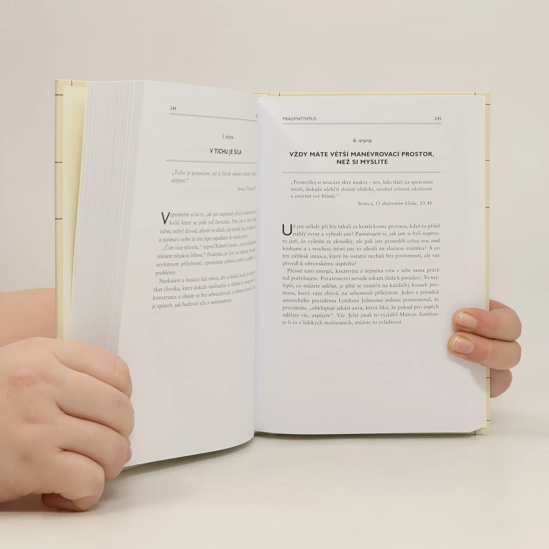 Zamyšlení pro každý den v roce v kontextu stoických myšlenek Marka Aurelia, Epiktéta či Seneky. Texty odpovídají na to, co je skutečné měřítko úspěchu, jak ovládnout negativní emoce, jak správně užít rozum, jak nalézt smysl života a překonat smutek.