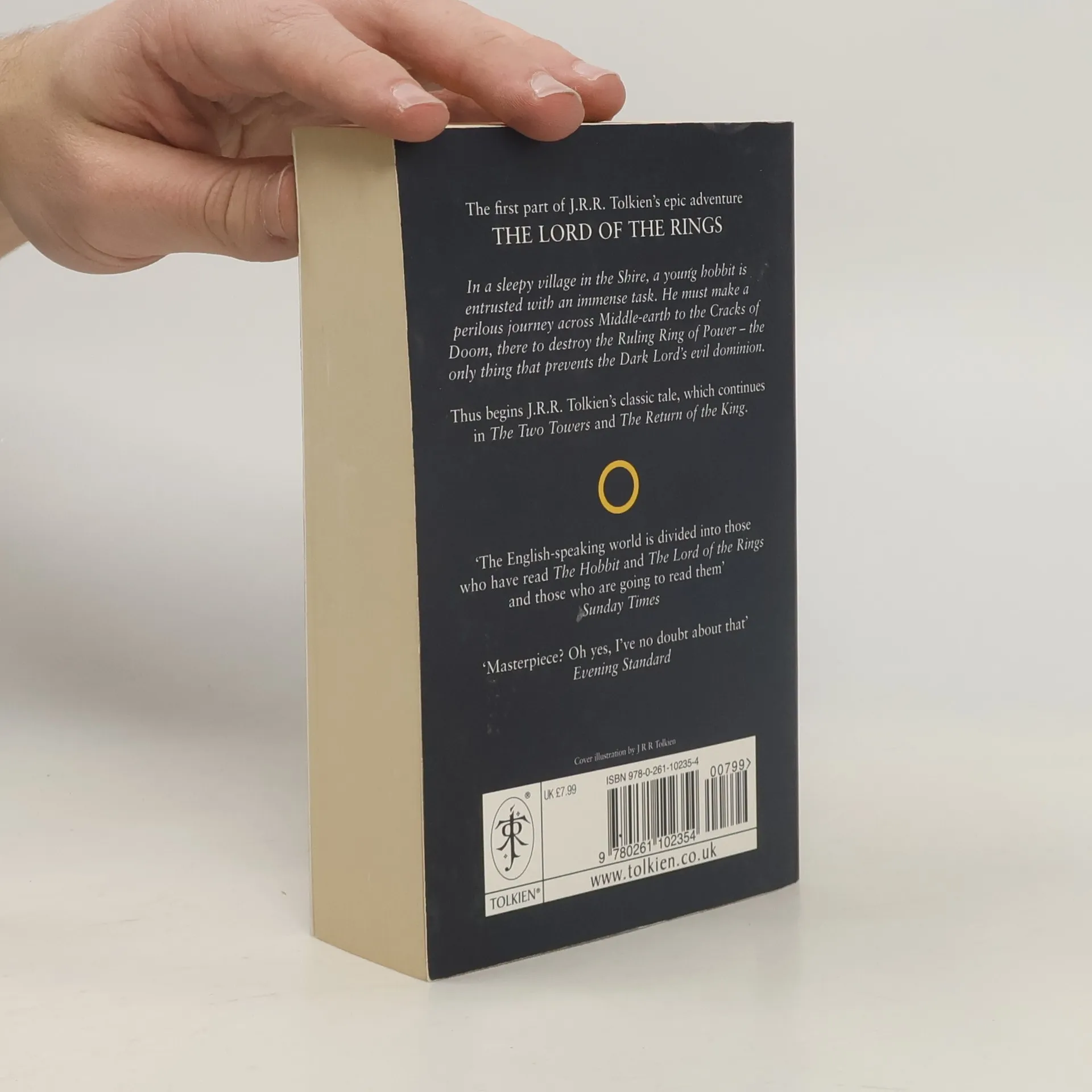 Continuing the story begun in The Hobbit, this is the first part of Tolkien s epic masterpiece, The Lord of the Rings, featuring a striking black cover based on Tolkien s own design, the definitive text, and a detailed map of Middle-earth. Sauron, the Dark Lord, has gathered to him all the Rings of Power the means by which he intends to rule Middle-earth. All he lacks in his plans for dominion is the One Ring the ring that rules them all which has fallen into the hands of the hobbit, Bilbo Baggins. In a sleepy village in the Shire, young Frodo Baggins finds himself faced with an immense task, as his elderly cousin Bilbo entrusts the Ring to his care. Frodo must leave his home and make a perilous journey across Middle-earth to the Cracks of Doom, there to destroy the Ring and foil the Dark Lord in his evil purpose. Part of a set of three paperbacks, this popular edition is once again available in its classic black livery designed by Tolkien himself."