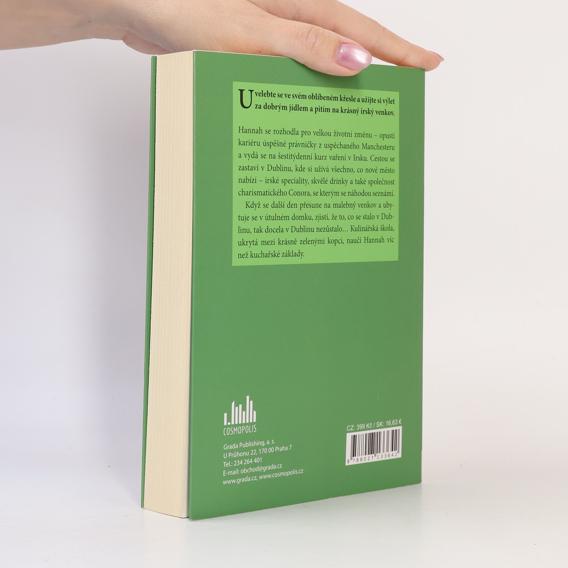 Uvelebte se v oblíbeném křesle a užijte si výlet za dobrým jídlem a pitím na krásný irský venkov. Hannah se rozhodla pro velkou životní změnu – vymění kariéru úspěšné právničky z uspěchaného Manchesteru za šestitýdenní kurz vaření v Irsku. Cestou se zastaví v Dublinu, kde si užívá všechno, co nové město nabízí – irské speciality, skvělé drinky a také společnost charismatického Conora, se kterým se náhodou seznámí. Když se další den přesune na malebný venkov a ubytuje se v útulném domku, zjistí, že to, co se stalo v Dublinu, tak docela v Dublinu nezůstalo… Kulinářská škola ukrytá mezi krásně zelenými kopci naučí Hannah víc než kuchařské základy.