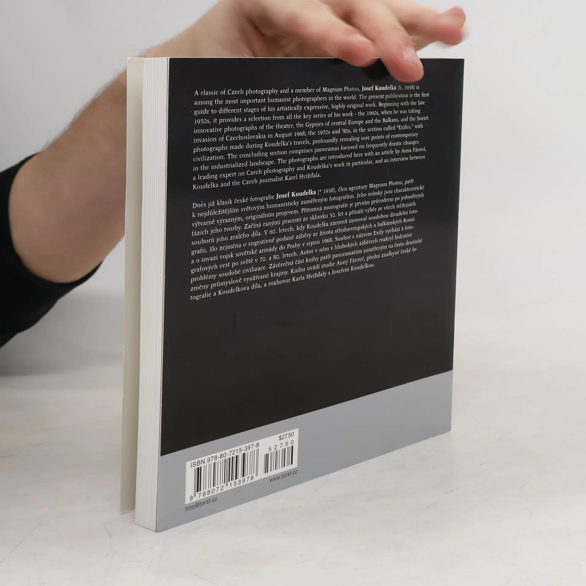 Torst's introduction to Josef Koudelka (born 1938) provides a selection from all the key phases of his work: his 1960s portraits of the gypsies of central Europe and the Balkans and the Soviet invasion of Czechoslovakia in August 1968; the travel photos of the 1970s and 1980s; and a concluding section of panoramas focused on industrialized landscapes.