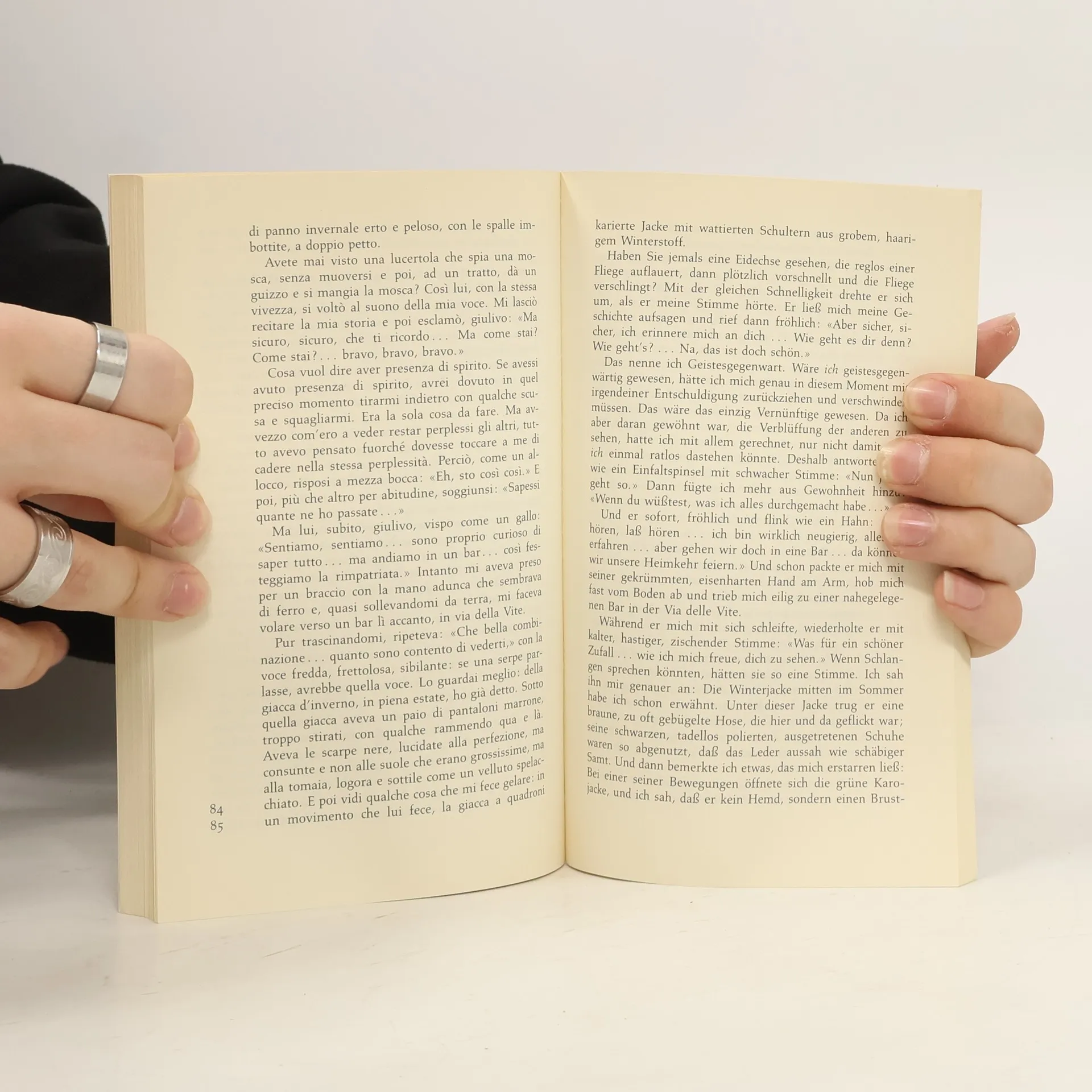 Alle diese neun handfest zupackenden Erzählungen habeneinen Ich-Erzähler. Alberto Moravia, der Meister des italienischen “psychologischen Realismus”, schlüpft jedesmal in eine andere Rolle. Er ist nacheinander- ein Schuhmacher, dem die Ehefrau durchgebrannt ist und der dadurch eine Bewusstseinsspaltung erleidet- der Onkel eines empfindsamen Schulmädchens, das amLeben verzagt; weswegen?- der Hausmeister eines Mietshauses, in dem oben ein romantisch humanistischer Professor wohnt;- der nichtsnutzige (aber ganz nette) Sohn einer alles verzeihenden Mutter- ein Junge, den die Angst vor einem elterlich verordneten Landaufenthalt über den Kopf wächst;- ein stadtstreichender Hochstapler und Schmarotzer, dessen witziger Trick ein einziges Mal danebengeht- ein Vater von viel zu vielen Kindern und Ehemann einer elementar mütterlichen Frau,- ein junger Friseur, der mit seinem Seniorpartner und Schwager wegen einer jungen Nachbarin aneinandergerät;- ein Kellner (später Lastwagenfahrer), der ein Landmädchen auf einsamer Höhe bemerkt.Der so vielfältige Ich-Erzähler und alle Gestalten, die er darstellt, sind “Kleine Leute” in Rom: eine Gesellschaft, von der die Rom-Touristen wenig oder nichts wissen und die doch, bei aller Armseligkeit, erstaunlich viel Verstand und Herz zum Vorschein kommen lässt.Italienischer Originaltext und deutsche Übersetzung stehen in Paralleldruck einander gegenüber. Texte für Könner.
