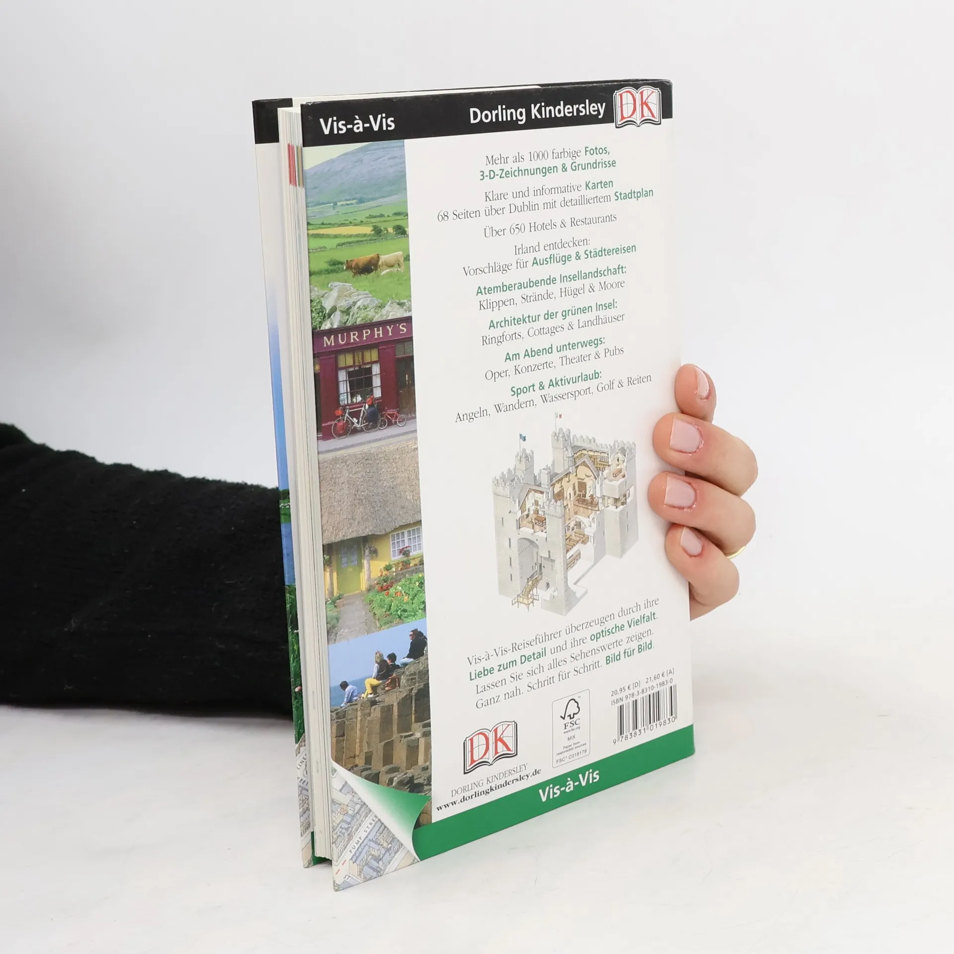 Irland ist das Land der strohgedeckten Cottages, der grünen Landschaften, der Pubs und der Musik. Keltische Ruinen, mittelalterliche Festungen und erhabene Felsküsten verleihen der Insel einen geradezu majestätischen Anstrich. Der Vis-à-Vis-Reiseführer Irland zeigt Ihnen die schönsten Seiten Irlands auf einen Blick. Die hervorragenden Abbildungen - exakte Schnittzeichnungen, dreidimensionale Grundrisse, Übersichtskarten und Stadtpläne - erleichtern Ihnen die Orientierung vor Ort. Vorschläge für Ausflüge, Städtereisen und Wandertouren verraten, wie Sie die grüne Insel am besten erkunden können. Der Hauptstadt Dublin ist ein Extra-Kapitel mit 68 Seiten gewidmet. Mit Extra-Tipps für Aktivurlauber und vielen praktischen Reisehinweisen.
