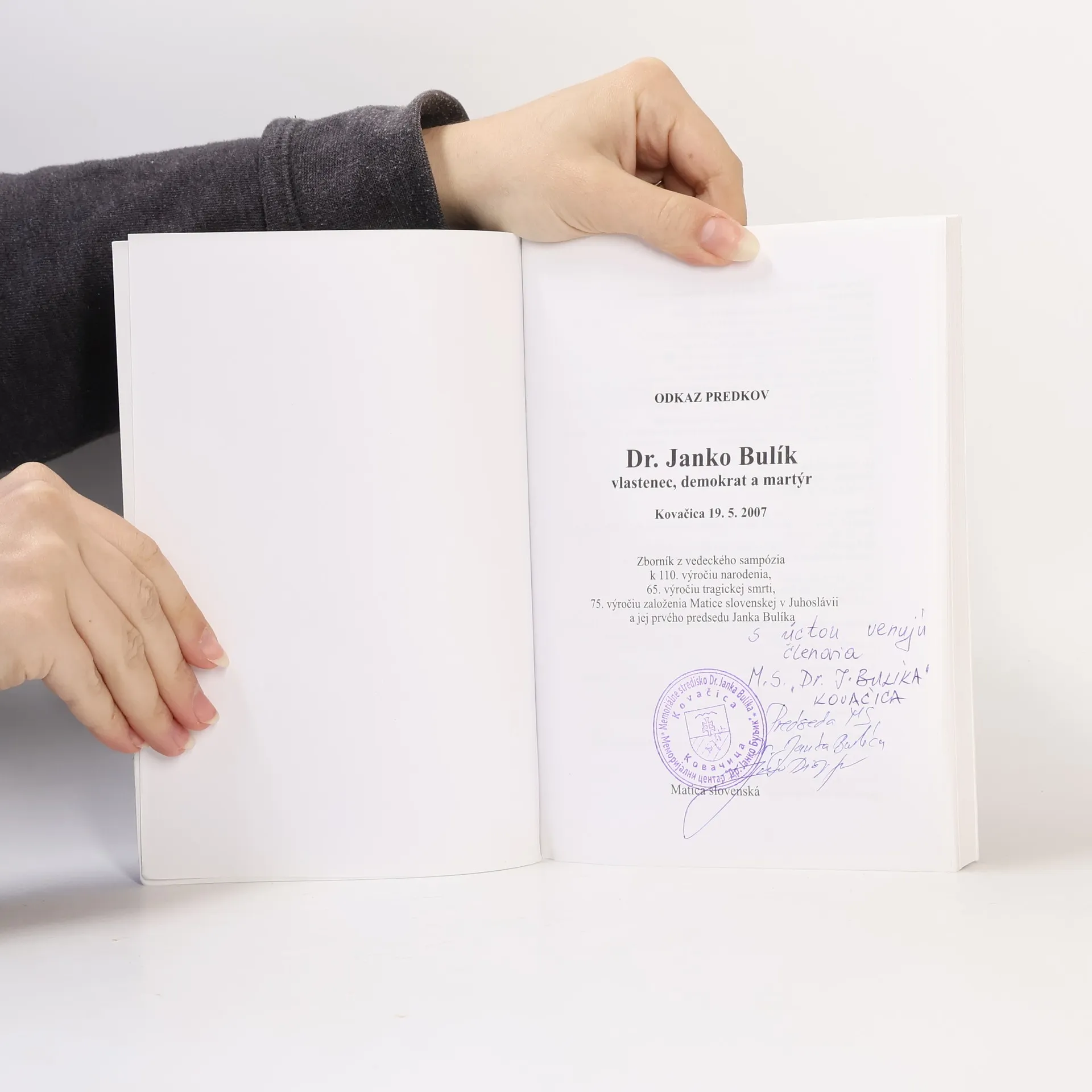 Zborník štúdií, článkov a dokumentov je venovaný Dr. Jánovi Bulíkovi (1897–1942), prvému predsedovi Matice slovenskej v Juhoslávii. Dielo zachytáva zachytáva túto významnú a hádam najpopulárnejšiu osobnosť spomedzi Slovákov na Dolnej zemi počas jeho života od mladých liet cez advokátsku prax v Belehrade, prácu v Matici až po jeho zapojenie sa do protifašistického odboja, ktoré ho nakoniec stálo život v koncentračnom tábore v Mauthausene.