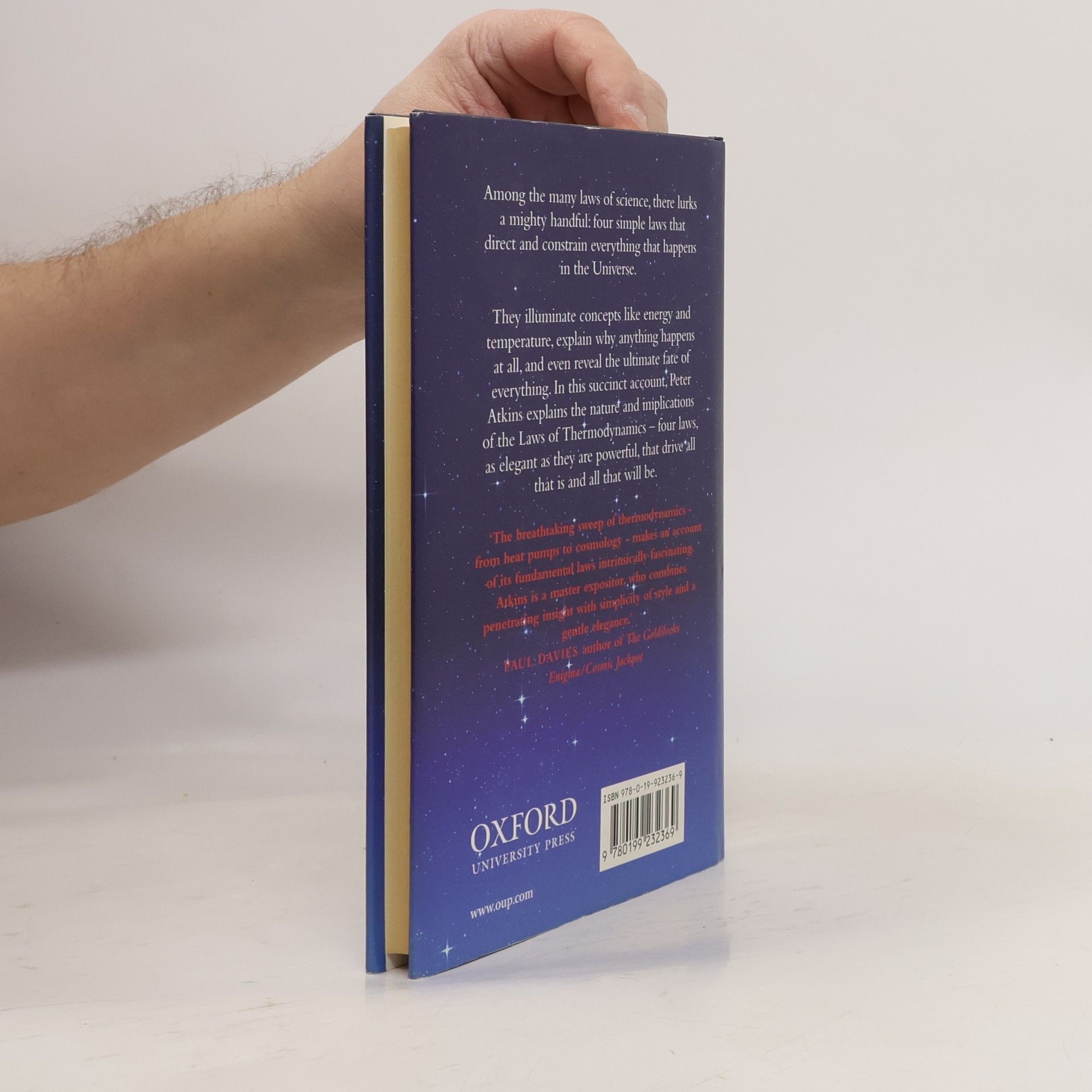 The laws of thermodynamics drive everything that happens in the universe. From the expansion of a cloud of gas to the cooling of hot metal, and from the unfurling of a leaf to the course of life itself - everything is directed and constrained by four simple laws. Peter Atkins' powerful introduction explains what the laws are and how they work.