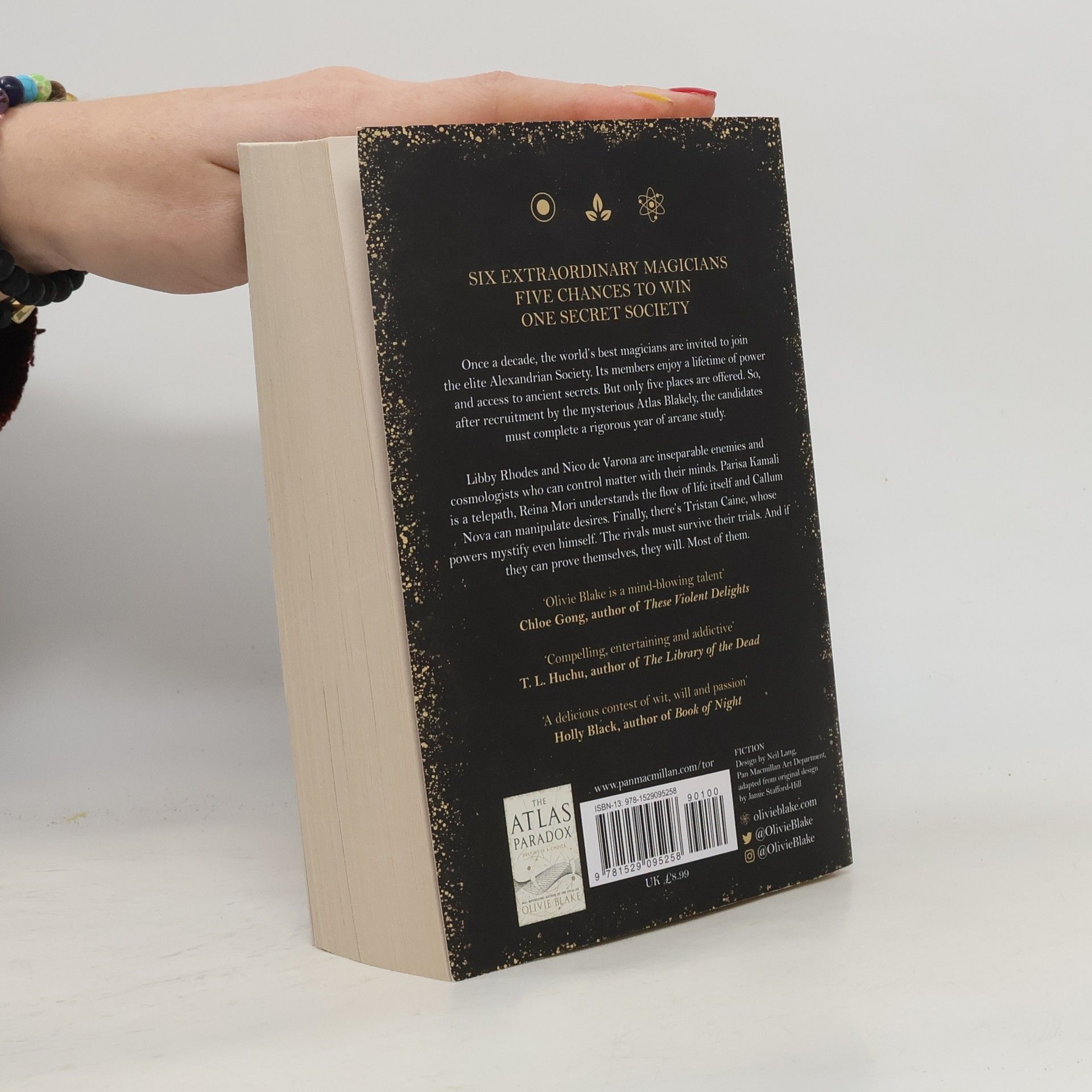 Secrets. Betrayal. Seduction.Welcome to the Alexandrian Society.When the world's best magicians are offered an extraordinary opportunity, saying yes is easy. Each could join the secretive Alexandrian Society, whose custodians guard lost knowledge from ancient civilizations. Their members enjoy a lifetime of power and prestige. Yet each decade, only six practitioners are invited - to fill five places.Contenders Libby Rhodes and Nico de Varona are inseparable enemies, cosmologists who can control matter with their minds. Parisa Kamali is a telepath, who sees the mind's deepest secrets. Reina Mori is a naturalist who can perceive and understand the flow of life itself. And Callum Nova is an empath, who can manipulate the desires of others. Finally there's Tristan Caine, whose powers mystify even himself.Following recruitment by the mysterious Atlas Blakely, they travel to the Society's London headquarters. Here, each must study and innovate within esoteric subject areas. And if they can prove themselves, over the course of a year, they'll survive. Most of them.The story continues in The Atlas Paradox, the heart-stopping sequel