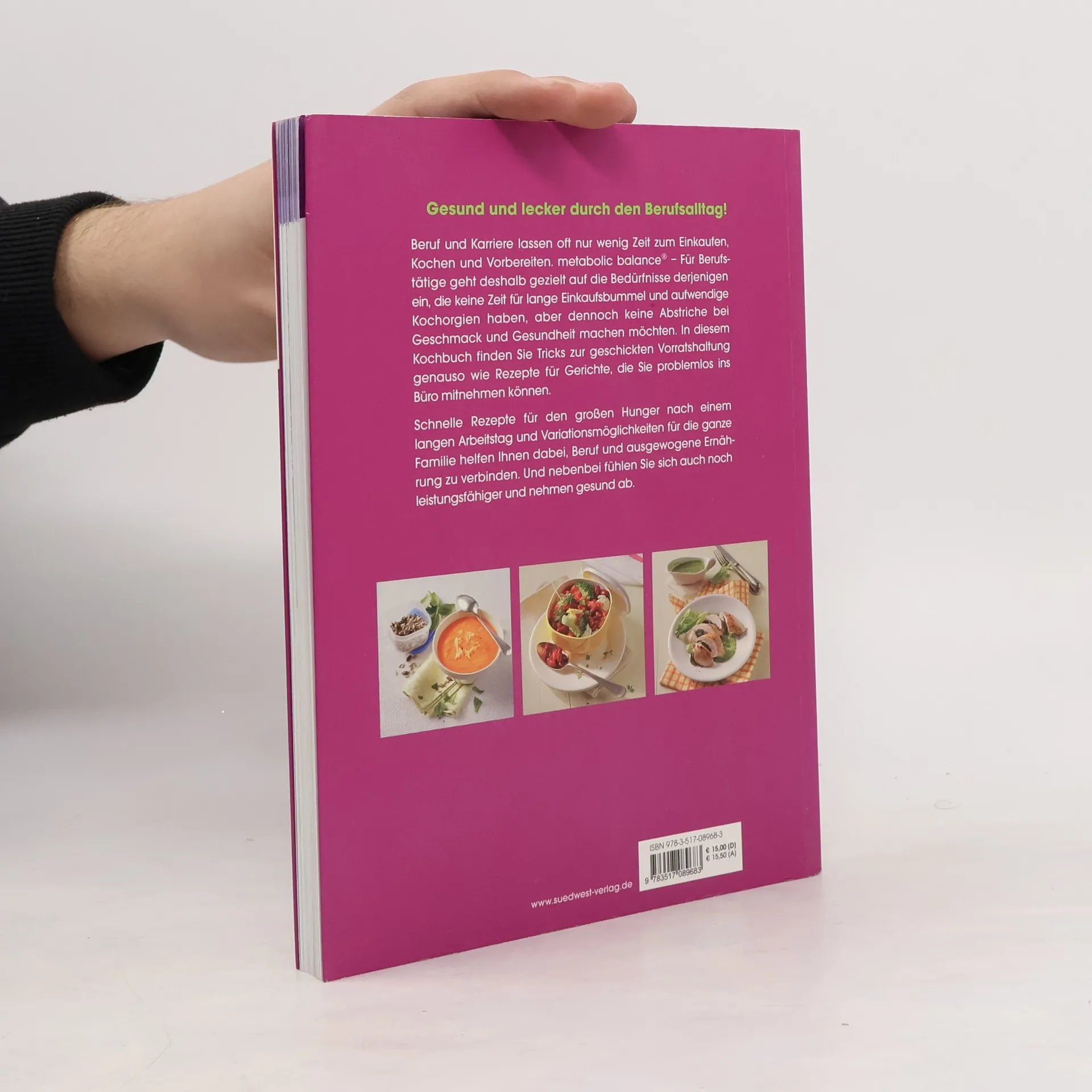 schnell, einfach & gesund! Eine Ernährungsumstellung nach metabolic balance® bringt den Stoffwechsel wieder ins Gleichgewicht und hilft dem Körper überflüssige Pfunde langfristig und ohne Hungern zu verlieren. Gerade Berufstätige tun sich mit einer Ernährungsumstellung oft schwer, da sie wenig Zeit haben und meist außer Haus essen. Dieses Kochbuch bietet Abhilfe: viele schnelle und einfache Rezeptideen sowie praktische Gerichte für unterwegs. Ausstattung: ca. 50 Farbfotos