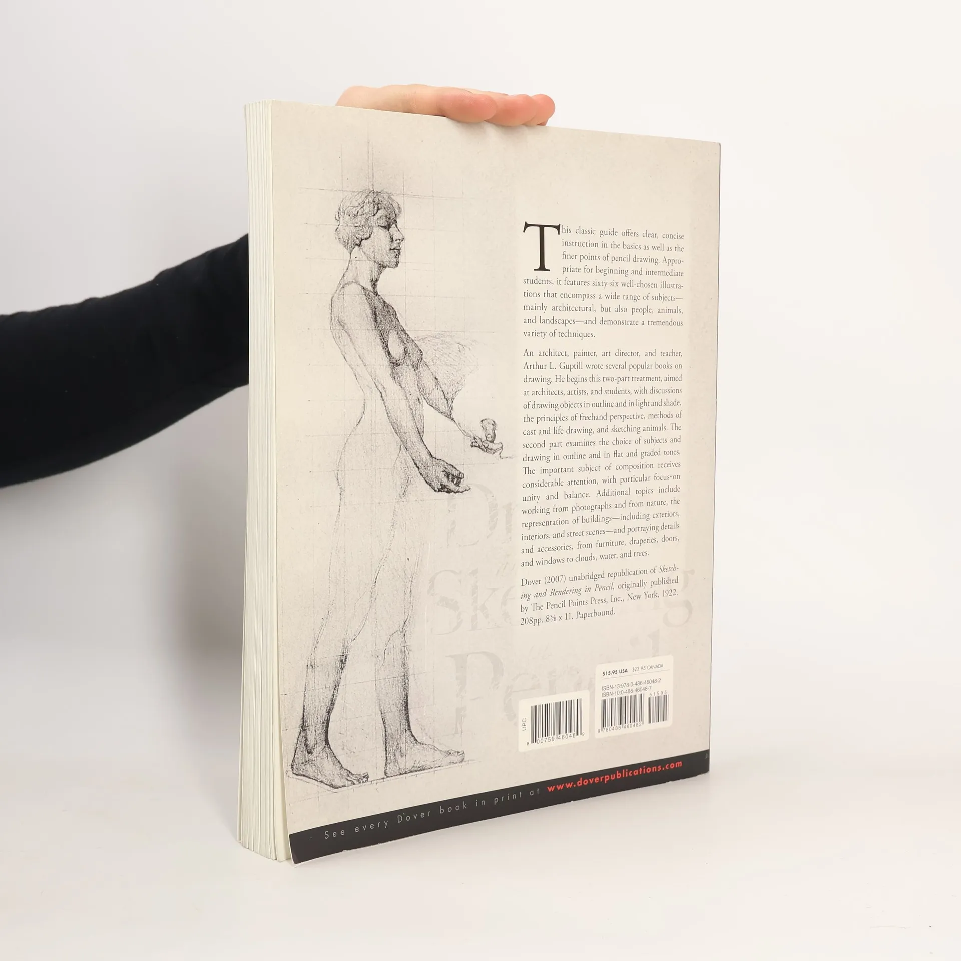 This classic guide offers clear, concise instruction in the basics as well as the finer points of pencil drawing. Appropriate for beginning and intermediate students, it features sixty-six well-chosen illustrations that encompass a wide range of subjects — mainly architectural, but also people, animals, and landscapes — and demonstrate a tremendous variety of techniques.An architect, painter, art director, and teacher, Arthur L. Guptill wrote several popular books on drawing. He begins this two-part treatment, aimed at architects, artists, and students, with discussions of drawing objects in outline and in light and shade, the principles of freehand perspective, methods of cast and life drawing, and sketching animals. The second part examines the choice of subjects and drawing in outline and in flat and graded tones. The important subject of composition receives considerable attention, with particular focus on unity and balance. Additional topics include working from photographs and from nature, the representation of buildings — including exteriors, interiors, and street scenes — and portraying details and accessories, from furniture, draperies, doors, and windows to clouds, water, and trees.