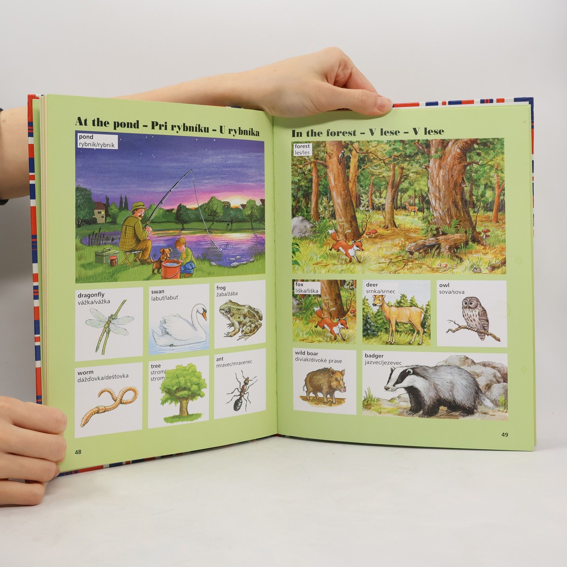 Angličtina - to je velké dobrodružství pro děti. Je to pro ně nový svět, který se vyplatí poznávat. Je to zábava. Jak to všechno vypadá a jak se to řekne anglicky, slovensky a česky? Tato barevná ilustrovaná kniha je průvodcem po různých oblastech života, od běžně známých věcí až po odlehlejší a méně známý svět. Je to i nádherná příležitost pro slovní lupiče či piráty! Každý si zde může přivlastnit tolik slovíček, kolik bude chtít. A čím více, tím lépe. Celkem jich děti v knize najdou kolem 400. To už je skutečně velká a hodnotná slovní zásoba. Angličtina je již na mnoha základních školách povinným předmětem. Tato kniha připraví předškoláky i žáky na vyučování a možná že ji budou používat i jako učební pomůcku.