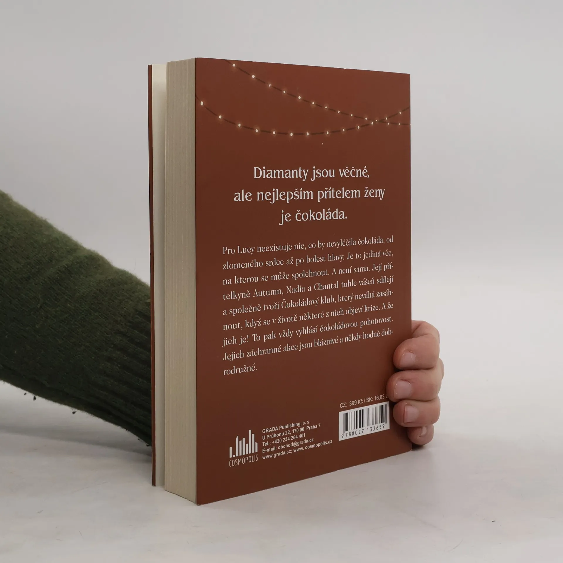 Diamanty jsou věčné, ale nejlepším přítelem ženy je čokoláda. Pro Lucy neexistuje nic, co by nevyléčila čokoláda, od zlomeného srdce až po bolest hlavy. Je to jediná věc, na kterou se může spolehnout. A není sama. Její přítelkyně Autumn, Nadia a Chantal sdílejí její vášeň a společně tvoří Čokoládový klub, který neváhá zasáhnout, když se v životě některé z nich objeví krize. A že jich je! To pak vždy vyhlásí čokoládovou pohotovost. Jejich záchranné akce jsou bláznivé a někdy hodně dobrodružné. Lucy překročila třicítku a stále hledá tu pravou práci i toho pravého muže. Ani jedno se bohužel neobejde bez nehod. Lékem a útěchou je pro ni čokoláda, ve které se opravdu vyzná. Nadia opustila skvělou práci i rodinu pro lásku, dnes má malého syna a manžela, který propadl hazardu. Je schopná slízat čokoládu i ze synkových sušenek, když na to přijde. Autumn, dívka z vyšších vrstev s příliš citlivým svědomím, ohnivými kudrnami a příšerným vkusem, se stará o drogově závislou mládež, svou vlastní závislost však pečlivě skrývá. Chantal je Američanka se čtyřicítkou na krku, bohatým manželem a nenaplněnou potřebou sexu. Její náhodní partneři způsobí řadu problémů, z nichž jí pomohou kamarádky a čokoláda.