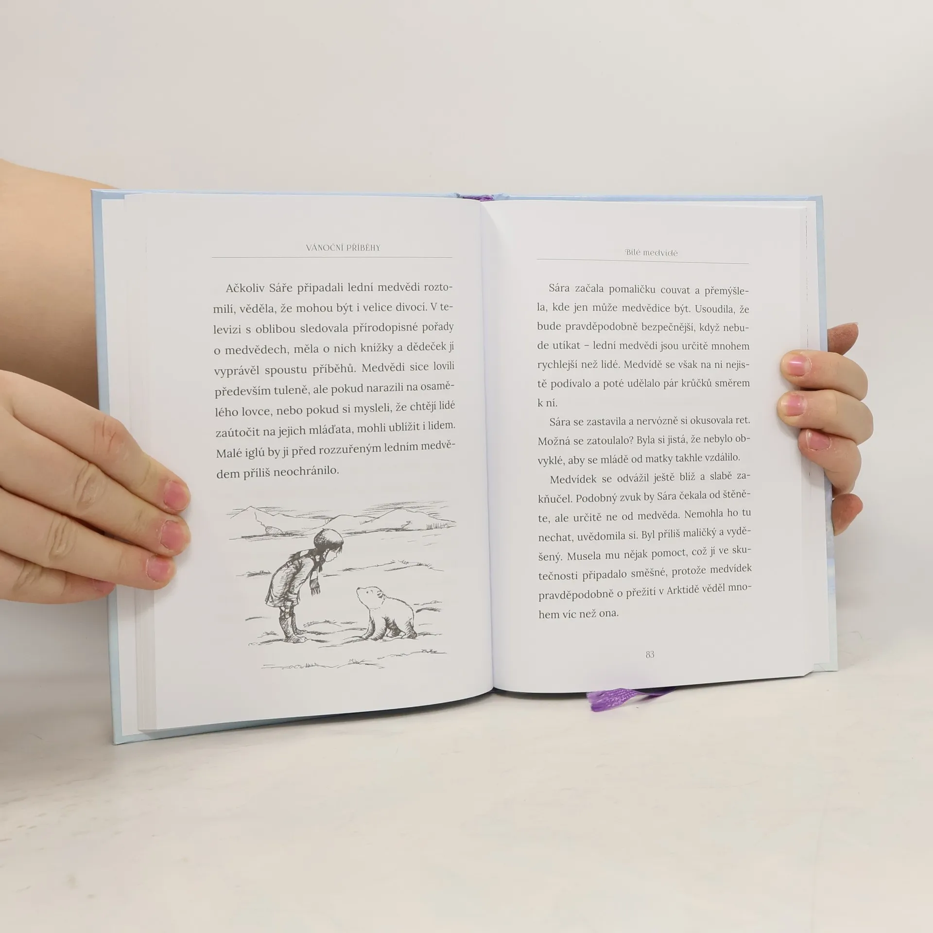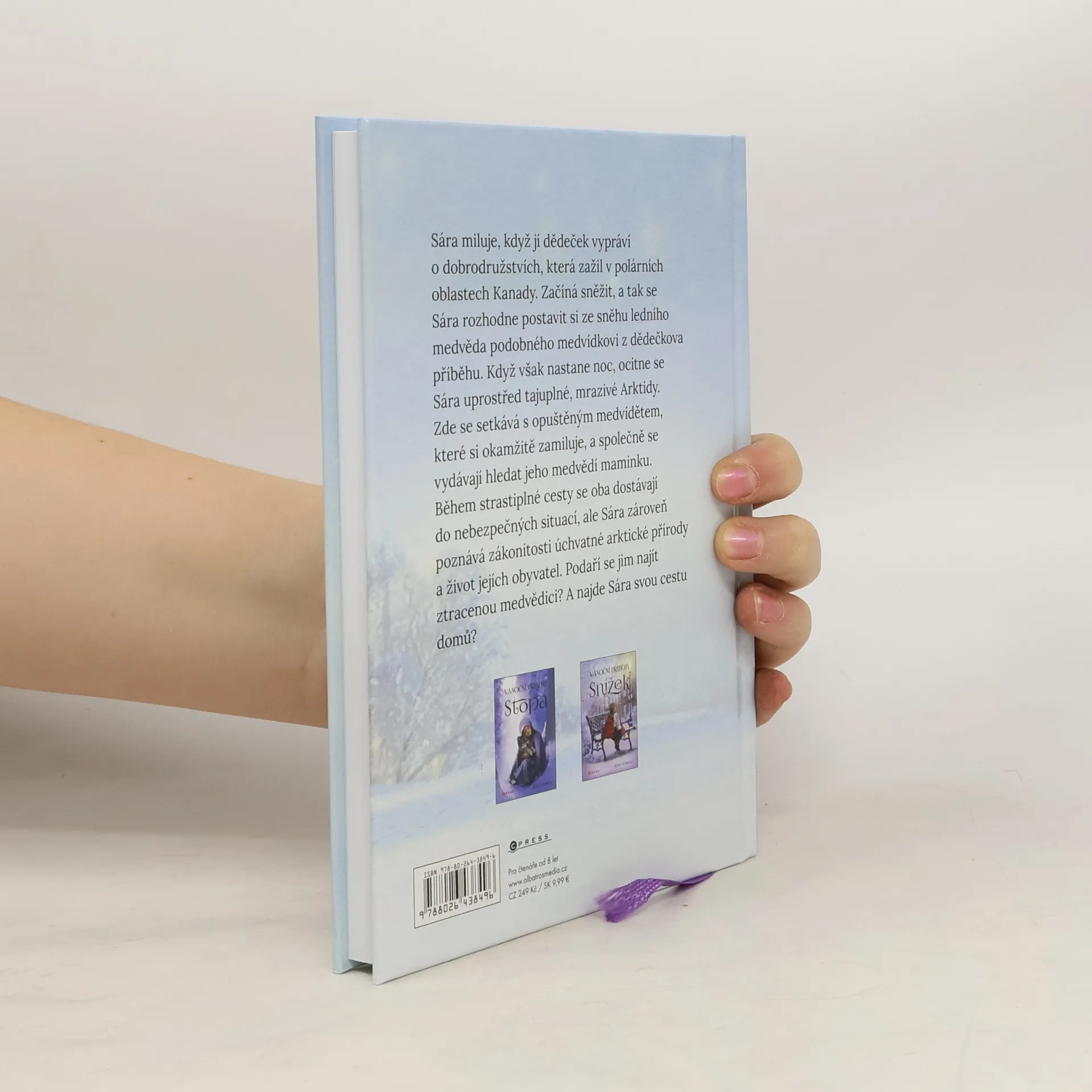 Dojemný i dobrodrodružný příběh, který zahřeje u srdce. Sára miluje, když jí dědeček vypráví o dobrodružstvích, která zažil v polárních oblastech Kanady. Začíná sněžit, a tak se Sára rozhodne postavit si ze sněhu ledního medvěda podobného tomu z dědečkova příběhu. Když však nastane noc, ocitne se Sára uprostřed tajuplné, mrazivé Arktidy. Zde se setkává s opuštěným medvídětem a společně se vydávají hledat jeho maminku. Překoná dívčina láska její vlastní stesk po rodičích a všechny nástrahy, které je čekají?