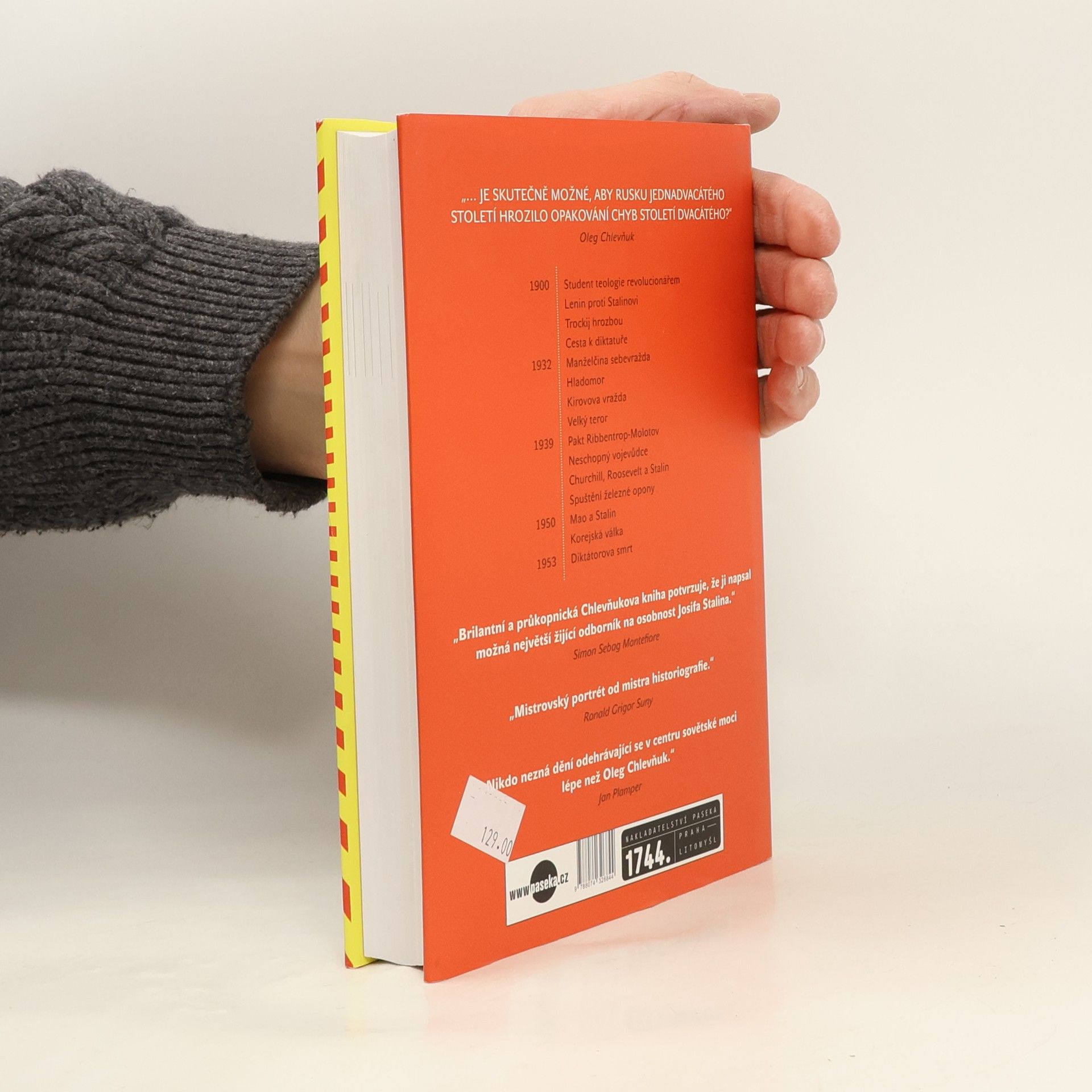 Nový životopis. Na každý rok Stalinovy absolutní vlády připadá na sovětské půdě ne méně než milion uvězněných či zavražděných, další miliony podlehly řízenému hladomoru. Kde se vzala v jednom člověku taková zvrácenost? Přes sugestivnost této otázky se Chlevňukovi daří přistoupit k tématu věcně a bez jakékoli mytizace „génia zla“. Badateli, jenž zná sovětské archivy snad nejlépe ze všech, prošly rukama stovky dosud neznámých pramenů, dopisů, vzpomínek a deníků. Vykreslený politický i soukromý portrét diktátora tak řeší nespočet otazníků a přichází s řadou nových faktů. Od prologu, který čtenáře zavede do Stalinovy oblíbené dači v okamžiku, kdy diktátor v kruhu svých věrných umírá, se zpětně odvíjí celý jeho život od dětství, přes revoluci a ranou bolševickou Leninovu vládu, uchopení moci, rozjezd industrializace a kolektivizace, Velký teror, druhou světovou válku až po poválečné období. Závěr předkládá pádné argumenty proti jakékoli nostalgii po stalinské éře.